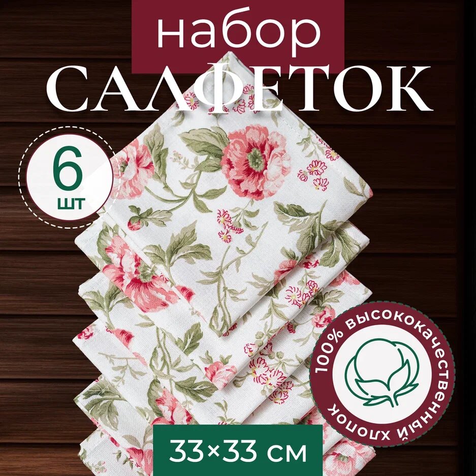 Салфетки на стол набор из 6 шт, хлопок 33 х 33