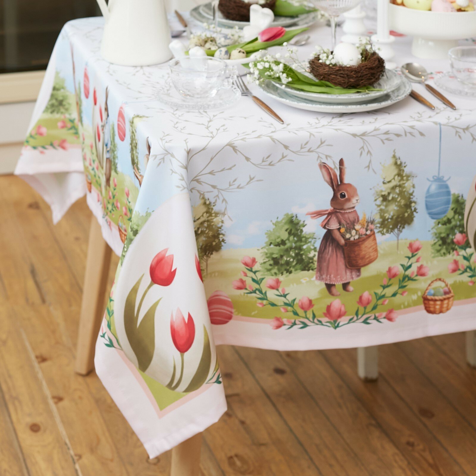 Скатерть пасхальная Доляна Fluffy bunnies, 180×144 см, 100% хлопок, 164 г/м²