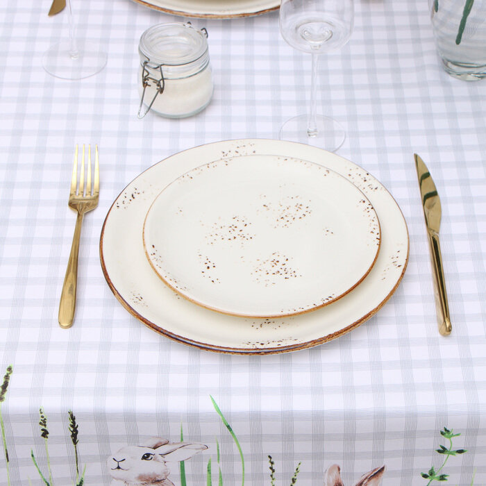 Скатерть пасхальная Доляна Fluffy bunnies, 180×144 см, 100% хлопок, 164 г/м²