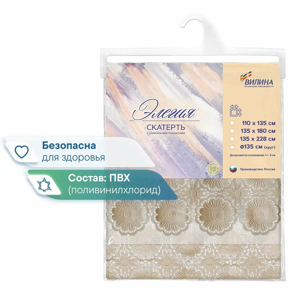 СохранитьСкатерть Вилина Элегия 005-beige, ПВХ, d 135 см, бежевая интересное: