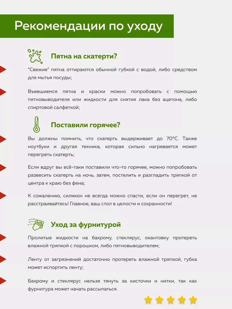 | Подробная комплектация | Картонный короб, инструкция, скатерть силиконовая - по 1 шт. |