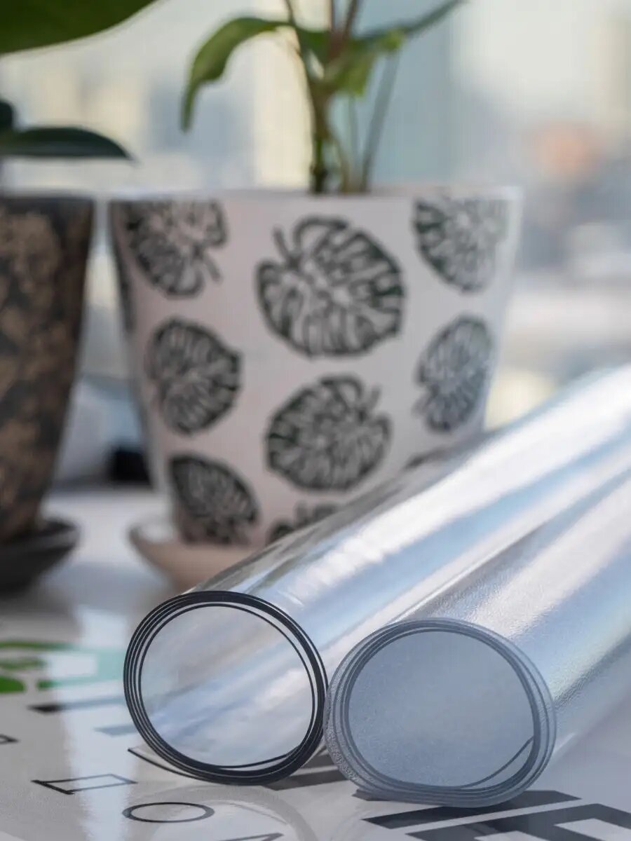 Скатерть прозрачная 140 x 190 см, толщина 0,2 мм (200 мк) / мягкое-гибкое стекло ПВХ