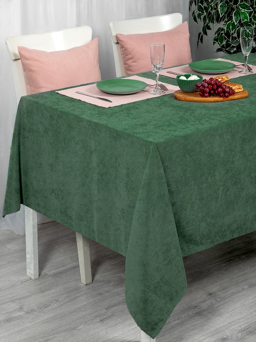 Купить Скатерть кухонная прямоугольная на стол 136x170 Изумруд / ткань велюр / для кухни, дома, дачи /Altali