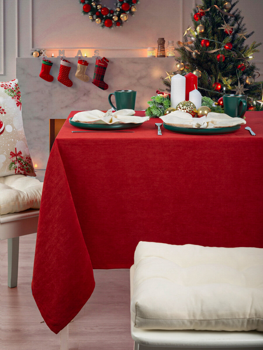 Скатерть новогодняя кухонная прямоугольная на стол 136x220 Красная Москва / ткань велюр / для кухни, дома, дачи /Altali