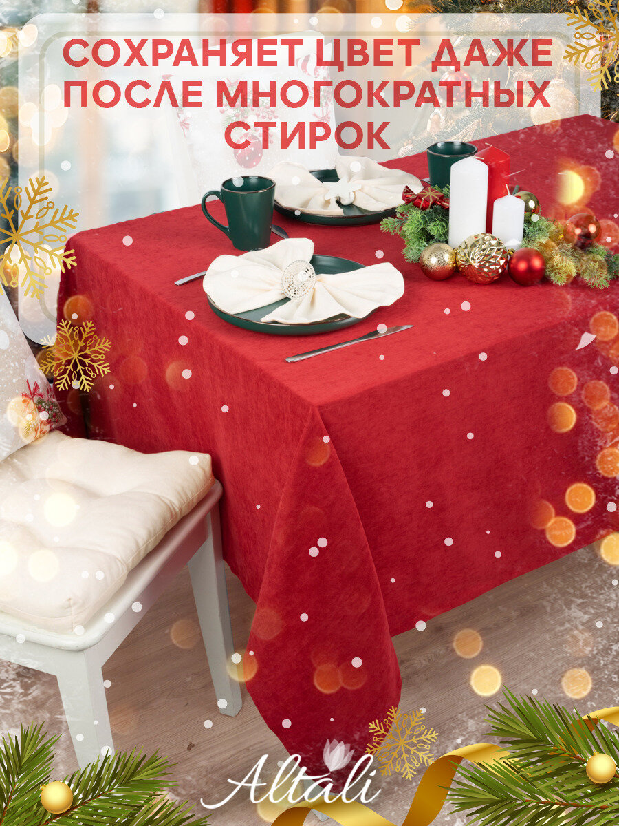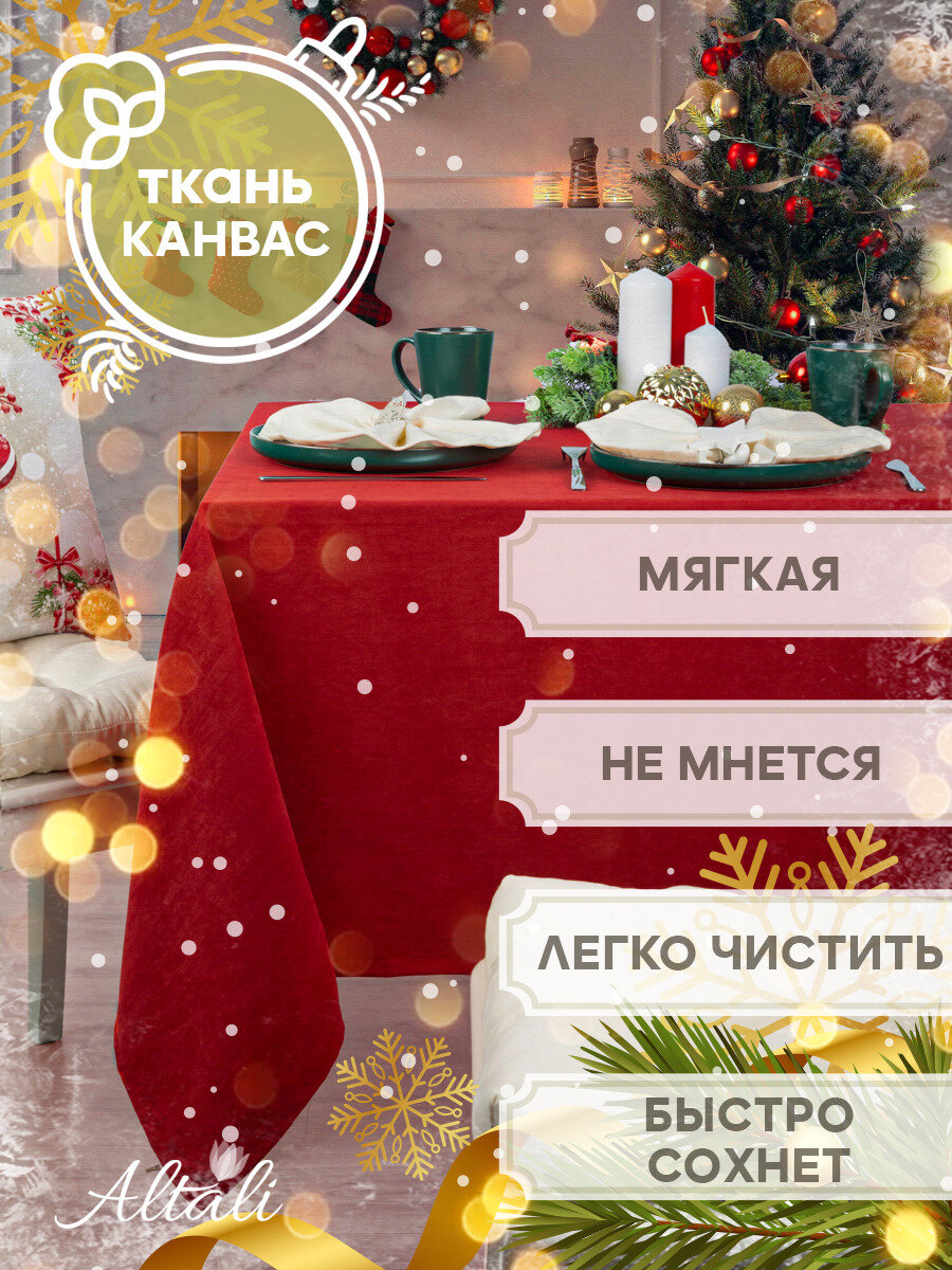 Скатерть новогодняя кухонная прямоугольная на стол 136x170 Красная Москва / ткань велюр / для кухни, дома, дачи /Altali