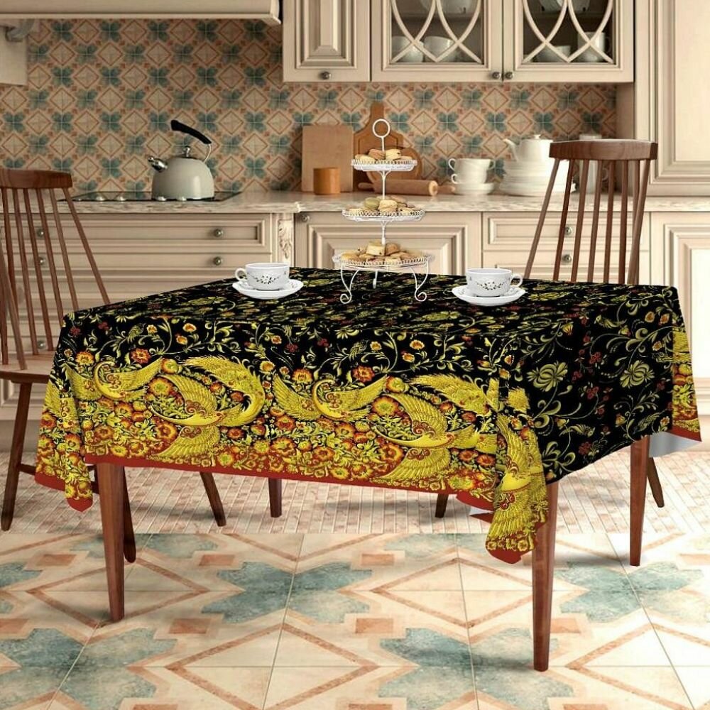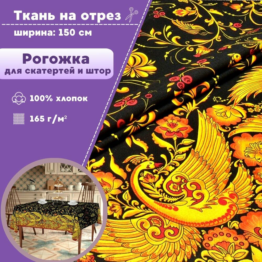 Купить ткань для скатерти/штор Рогожка "Хохлома", ш-150 см, на отрез, цена за пог.метр