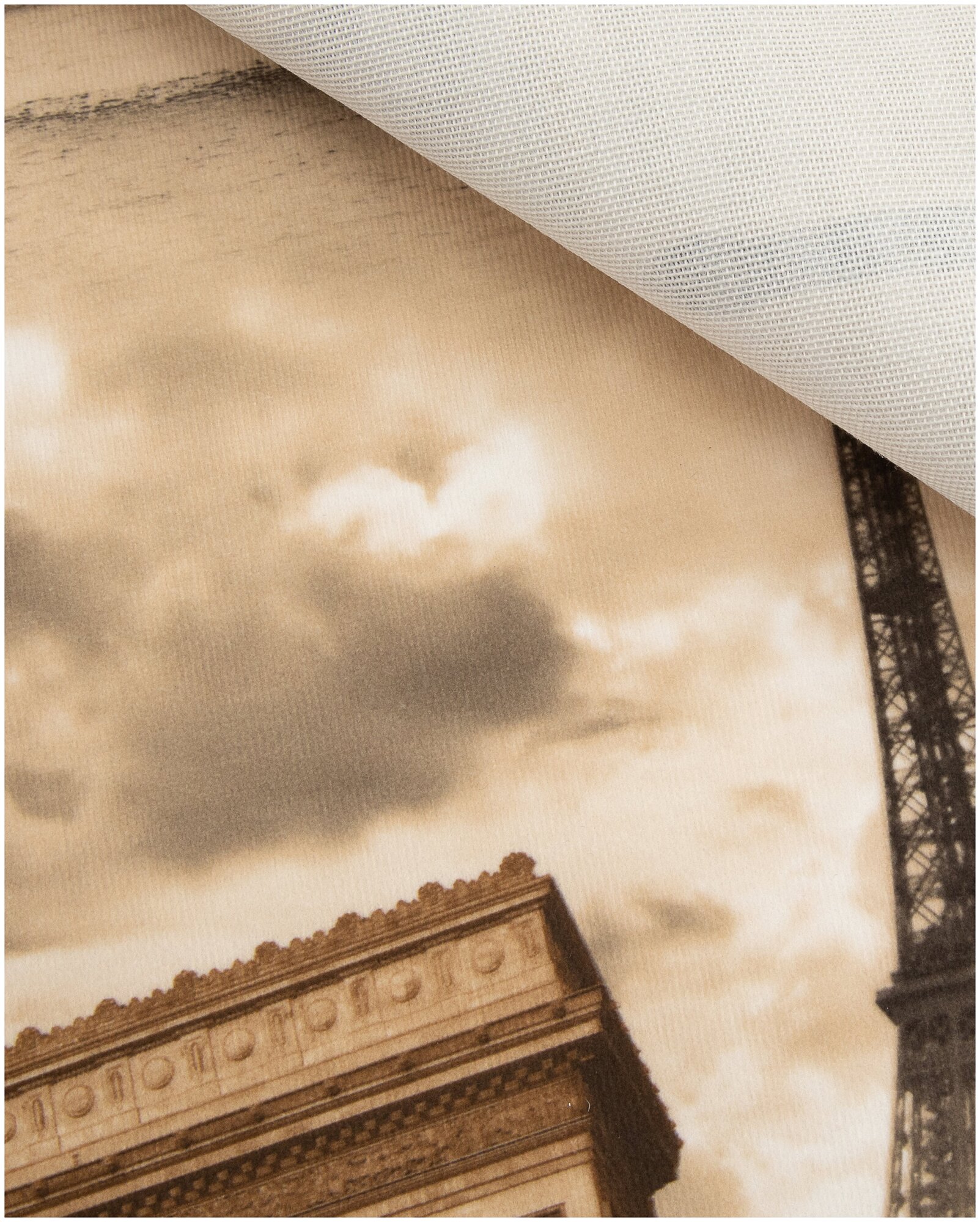 Ткань Микровелюр с принтом, цвет - Темно-коричневый Париж (M35-4) (Ткань для шитья, для мебели)
