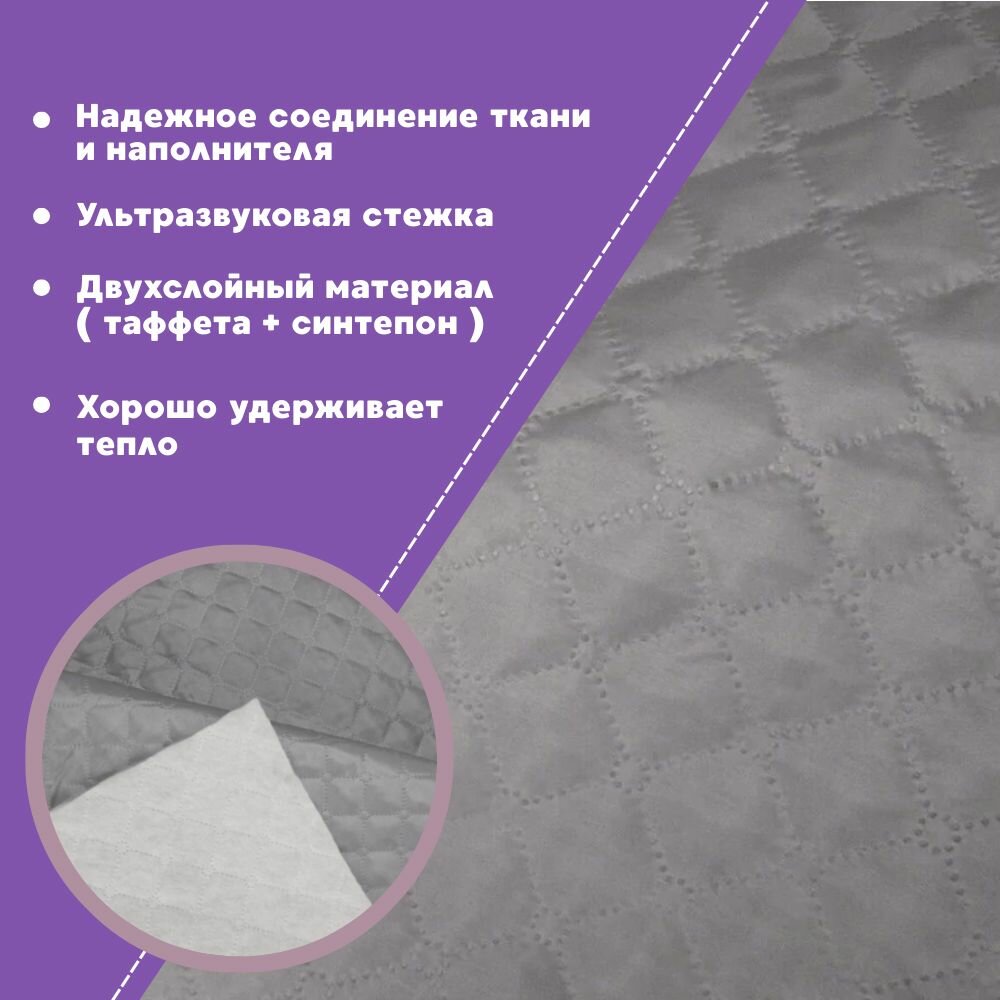 ткань термостеганая подкладочная Таффета+синтепон, цвет серый, ш-150 см, на отрез, цена за 2 пог.метра