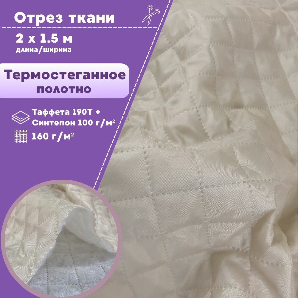 Ткань термостеганая подкладочная Таффета+синтепон, цвет молочный, ш-150 см, на отрез, цена за 2 пог. метра
