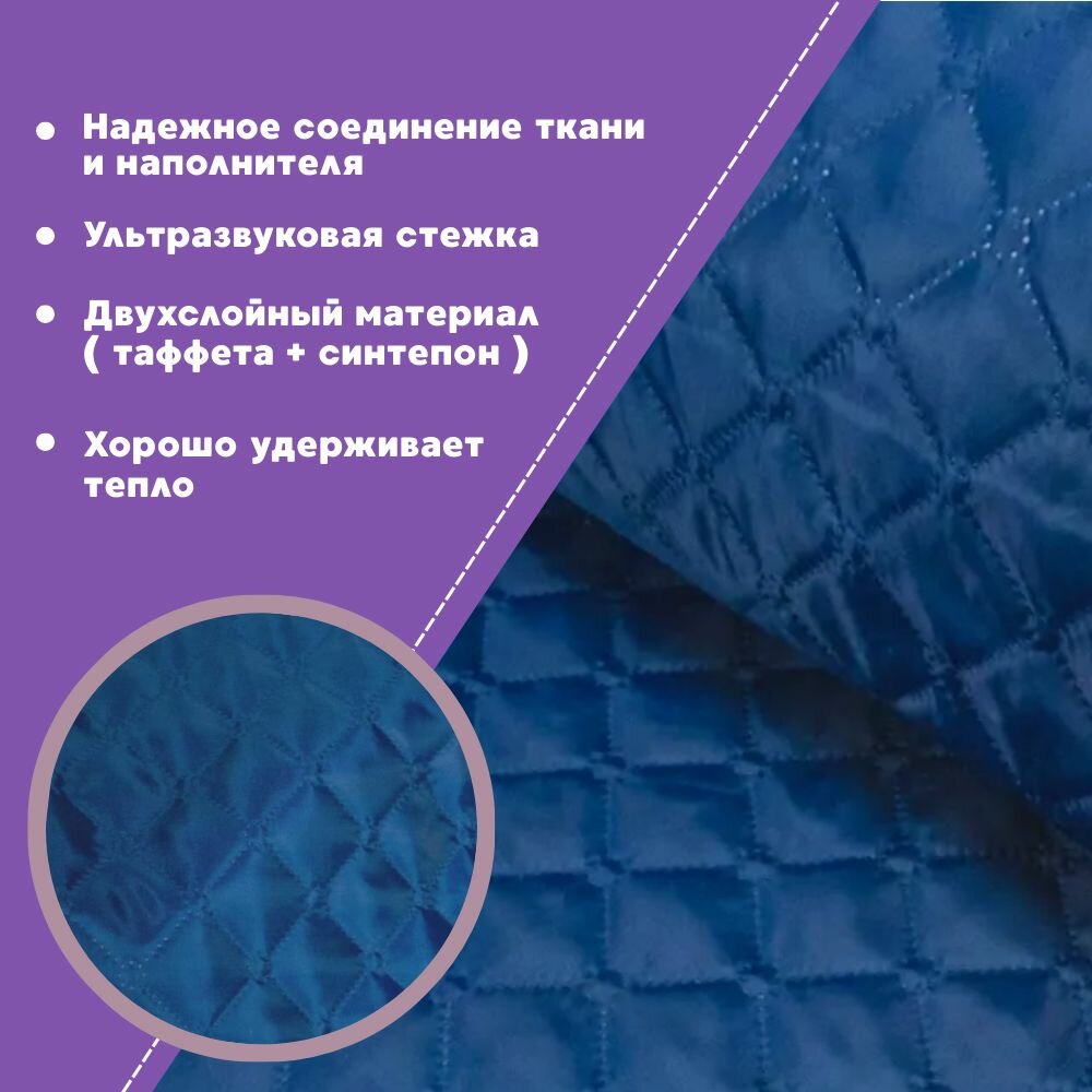 Сохранитьткань термостеганая подкладочная Таффета+синтепон, цвет василек, ш-150 см, на отрез, цена за 2 пог.метра интересное: