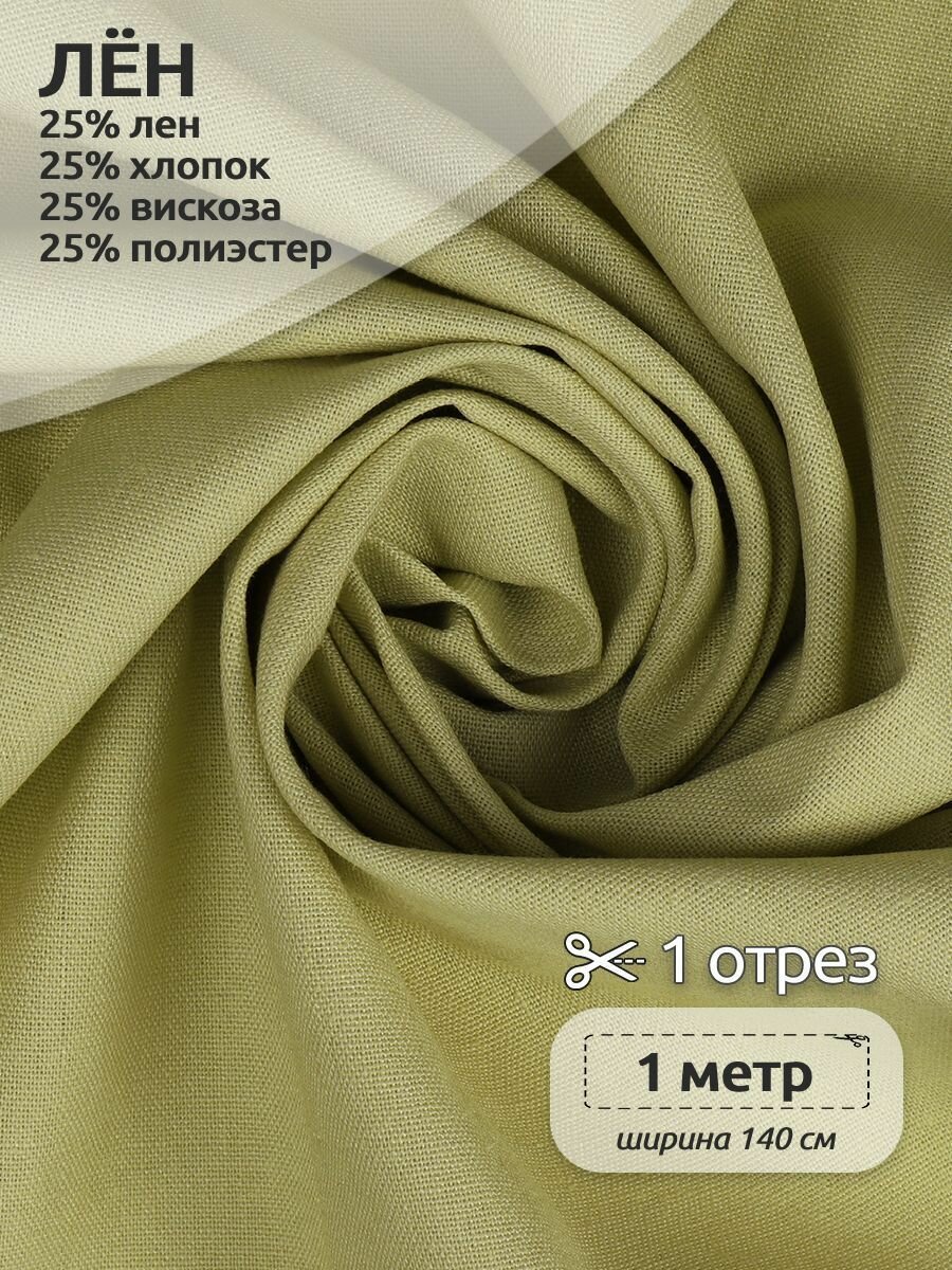 Ткань льняная 200 г/м² лен 25%, хб 25%, вискоза 25%, пэ 25% шир.140 см арт.TBY.Li.1009.25 цв.25 хаки уп.1м