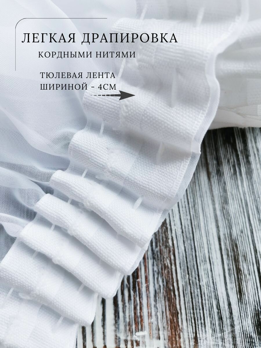 TEXWAY Тюль в спальню 400х260 широкая однотонная вуаль белый интересное: