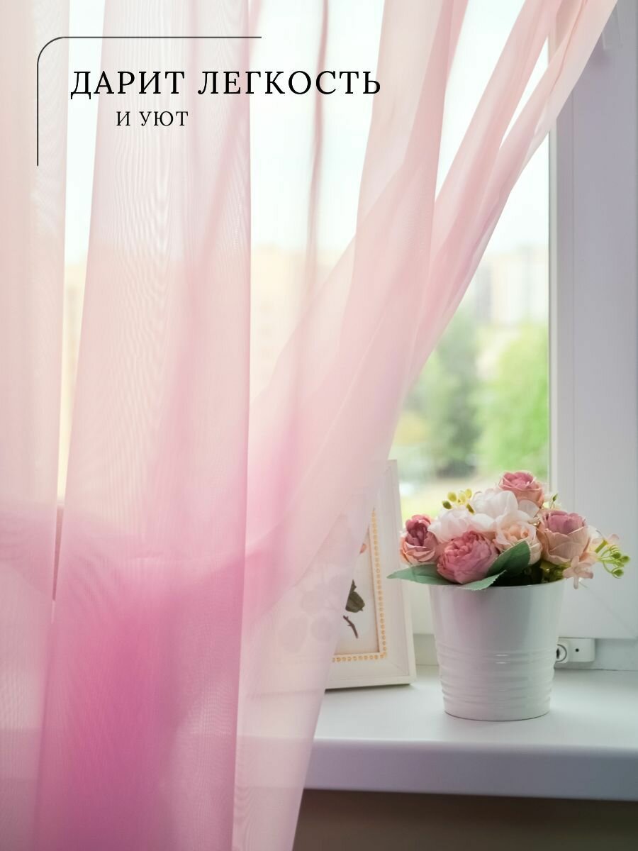 TEXWAY Тюль в спальню 400х260 широкая однотонная вуаль розовый интересное: