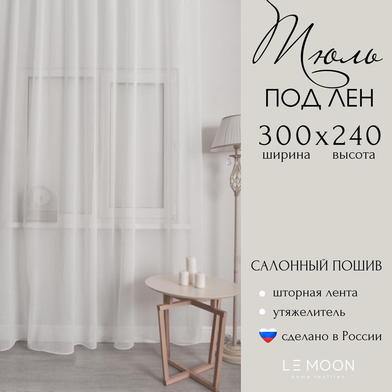 Купить Тюль под лён с утяжелителем 300х240 белый в спальню, в комнату, в детскую, на кухню