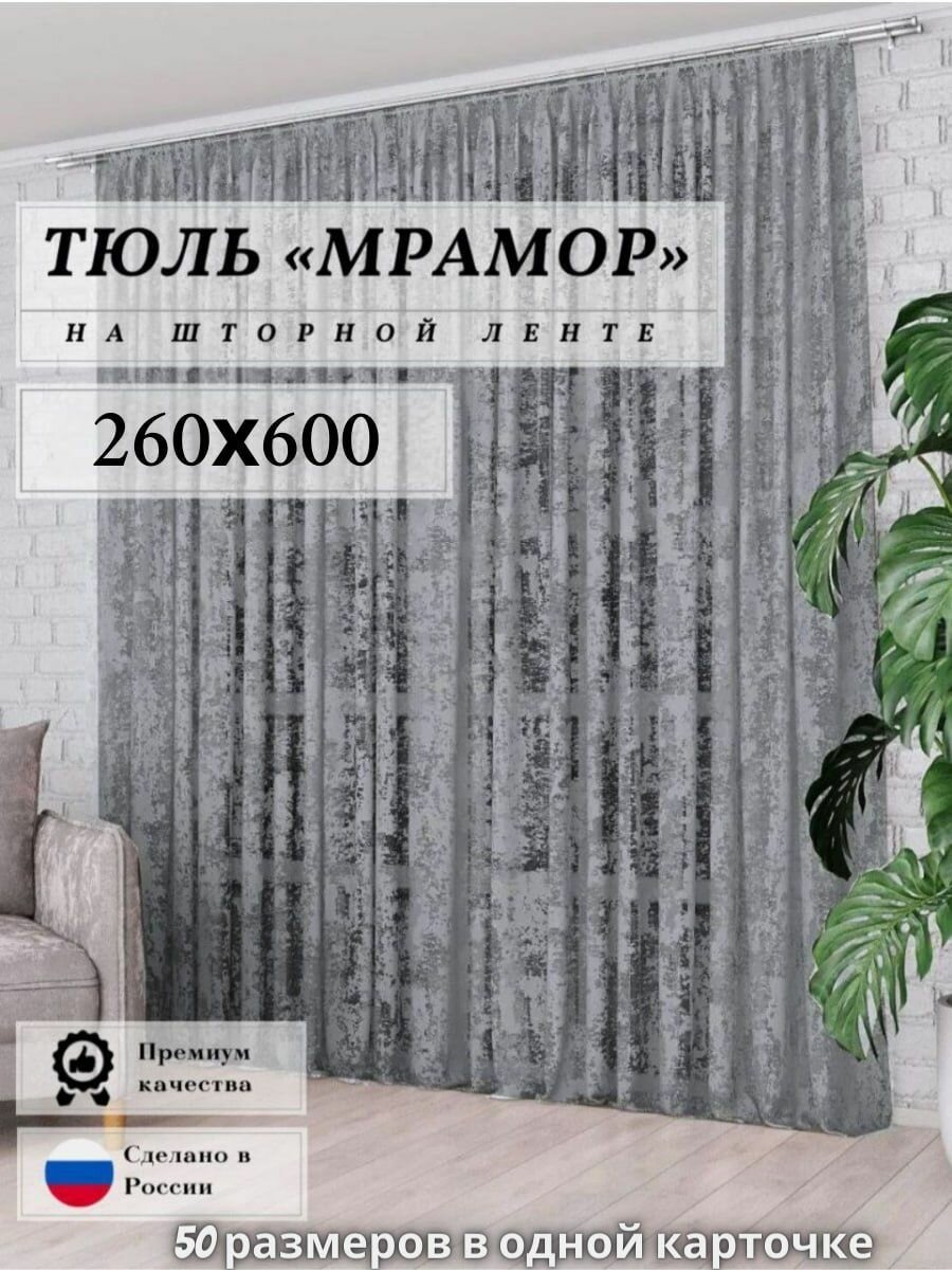 Тюль Мрамор сетка Высота 260см Ширина 600см, 260х600,в гостиную, детскую комнаты, кухни, шторы жаккард