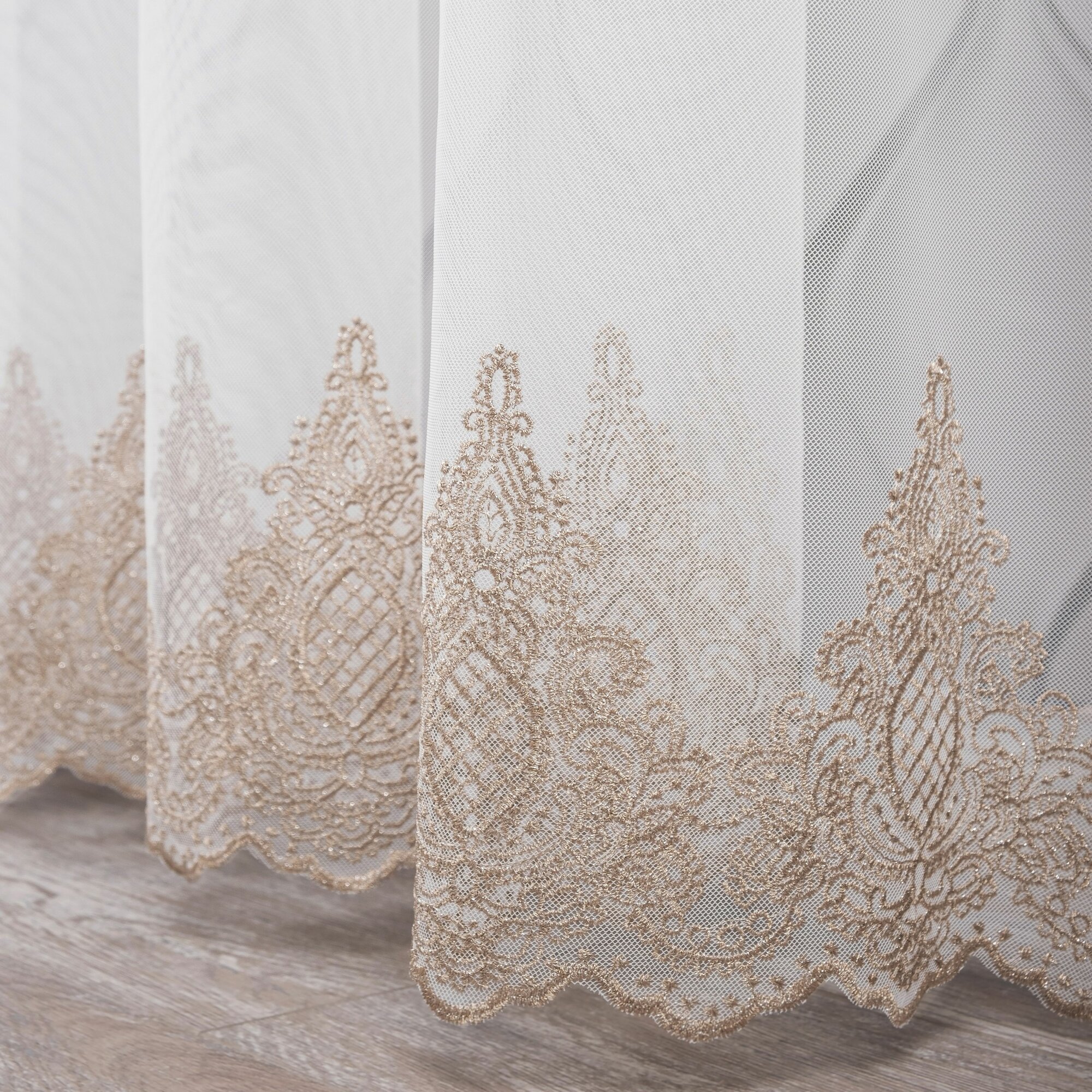 Тюль сетка с вышивкой Arya FREZYA для комнаты, для кухни, 300x270 см, золотистый