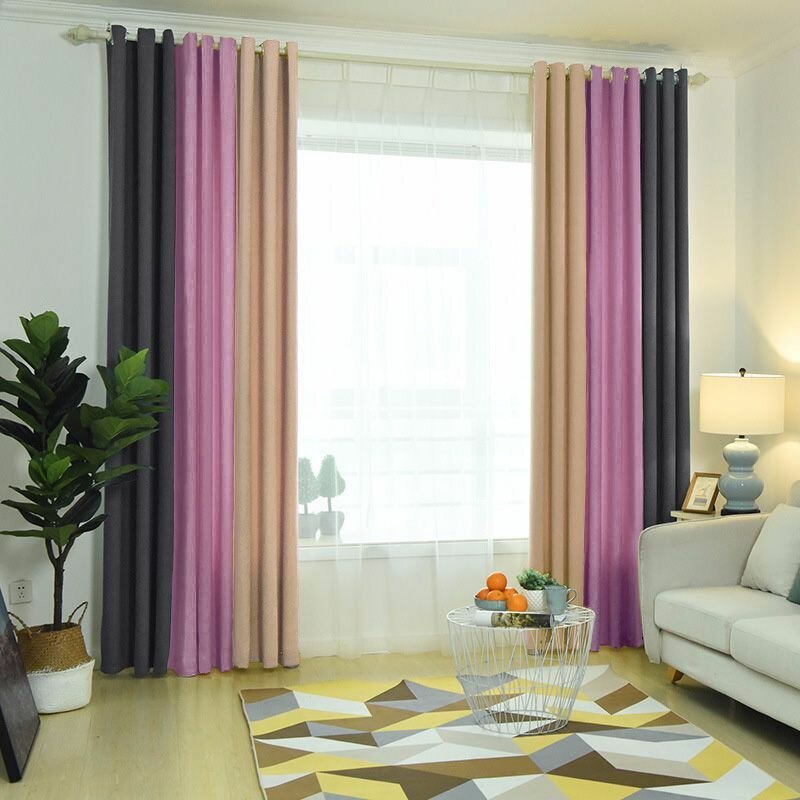 Купить Шторы блэкаут на люверсах Комби - 2 шт. (шир. 120 см * выс. 240 см) цвета черный розовый бежевый Цена за 2 шторы как на фото БК-3ЦВ-Л-1