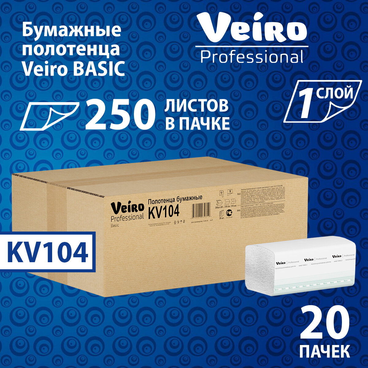 Купить KV104 Бумажные полотенца в пачках Veiro Professional Basic цвет натуральный однослойные (20 пач х 250 л)