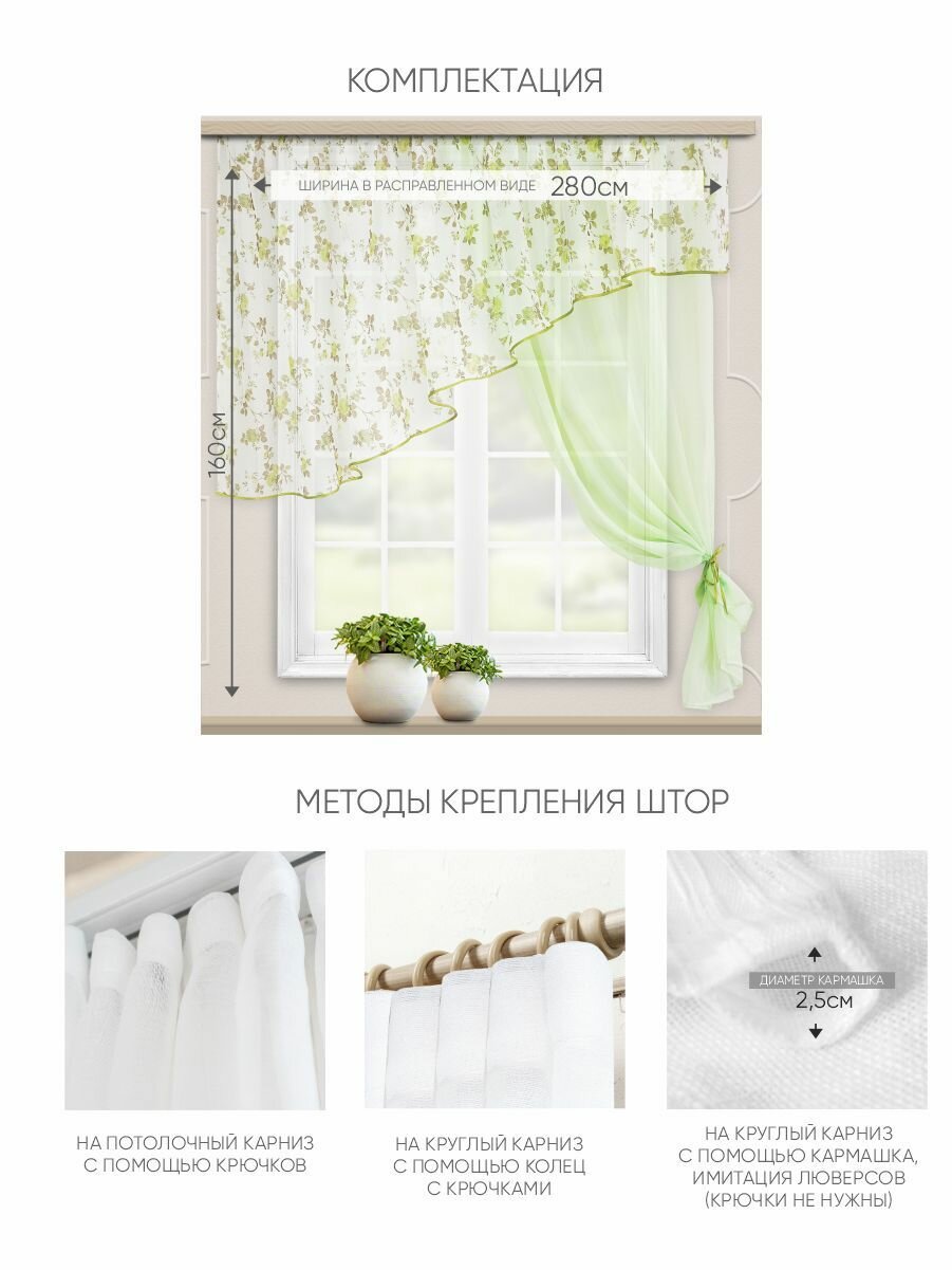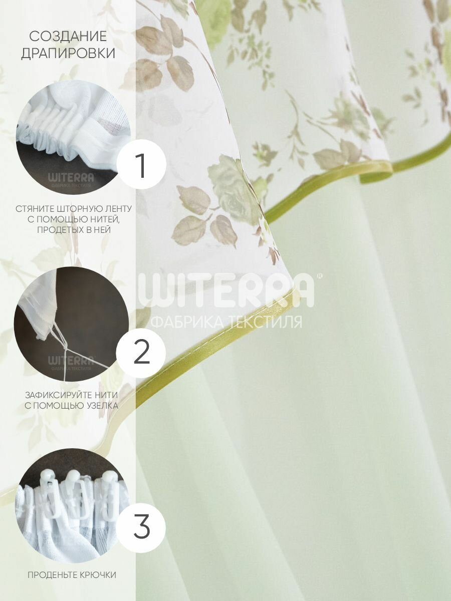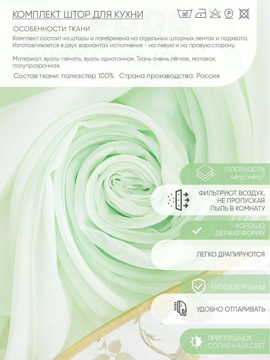 Купить Комплект штор для кухни Witerra Византия 280х160см, св.зеленый, правая, пэ100%
