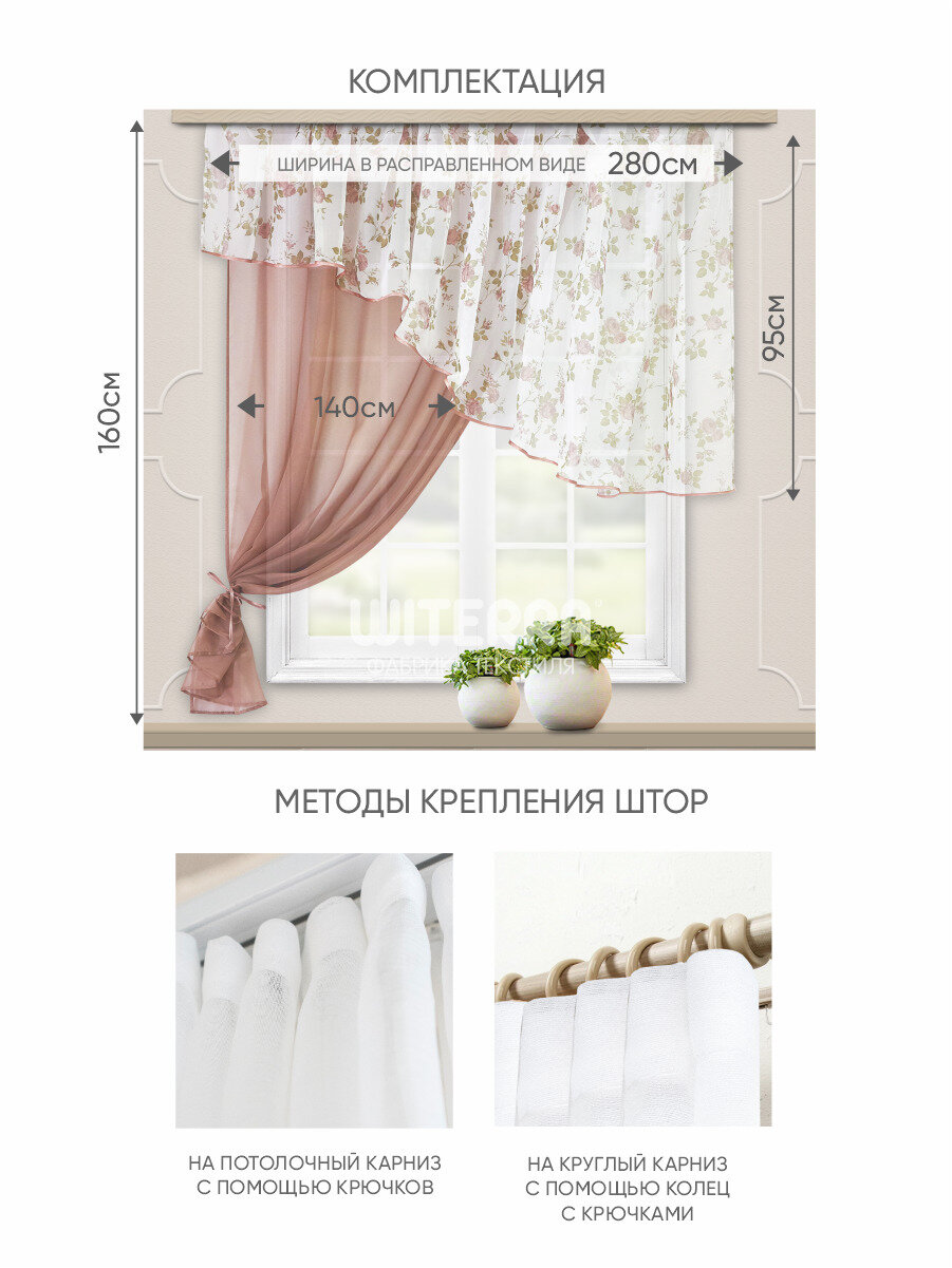 | Комплектация | - ламбрекен - 1 шт.; - портьера-вуаль - 1 шт.; - подхват - 1 шт. |