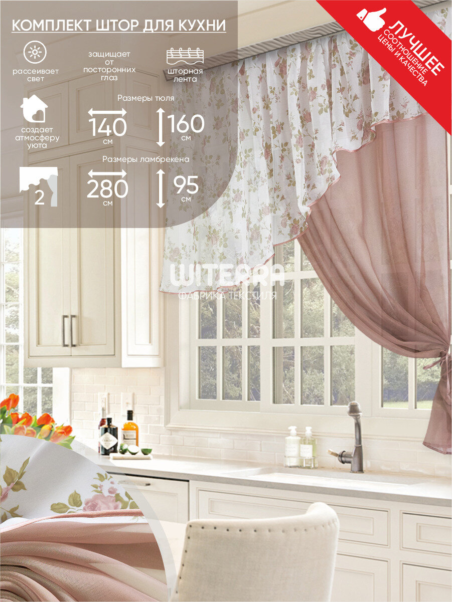 Комплект штор для кухни Witerra "Византия", 280х160 см, персиковый