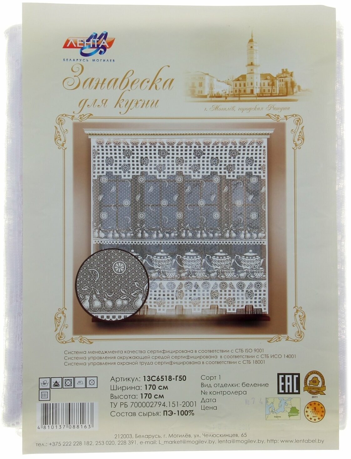 Занавеска для кухни (белый ; 1.70*1.70м ; 1 ; 13С6518-Г50) интересное: