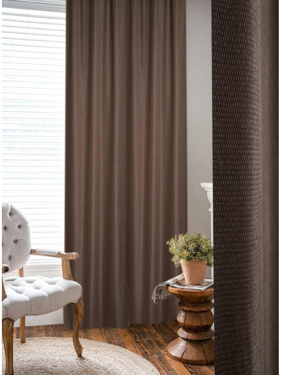 Купить Комплект блэкаут портьерных штор 300x270 см, 2 штуки, рогожка, цвет: шоколадный