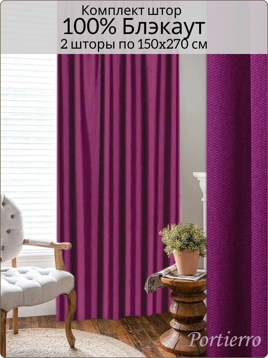 СохранитьКомплект блэкаут портьерных штор 300x270 см, 2 штуки, рогожка, цвет: фиолетовый интересное: