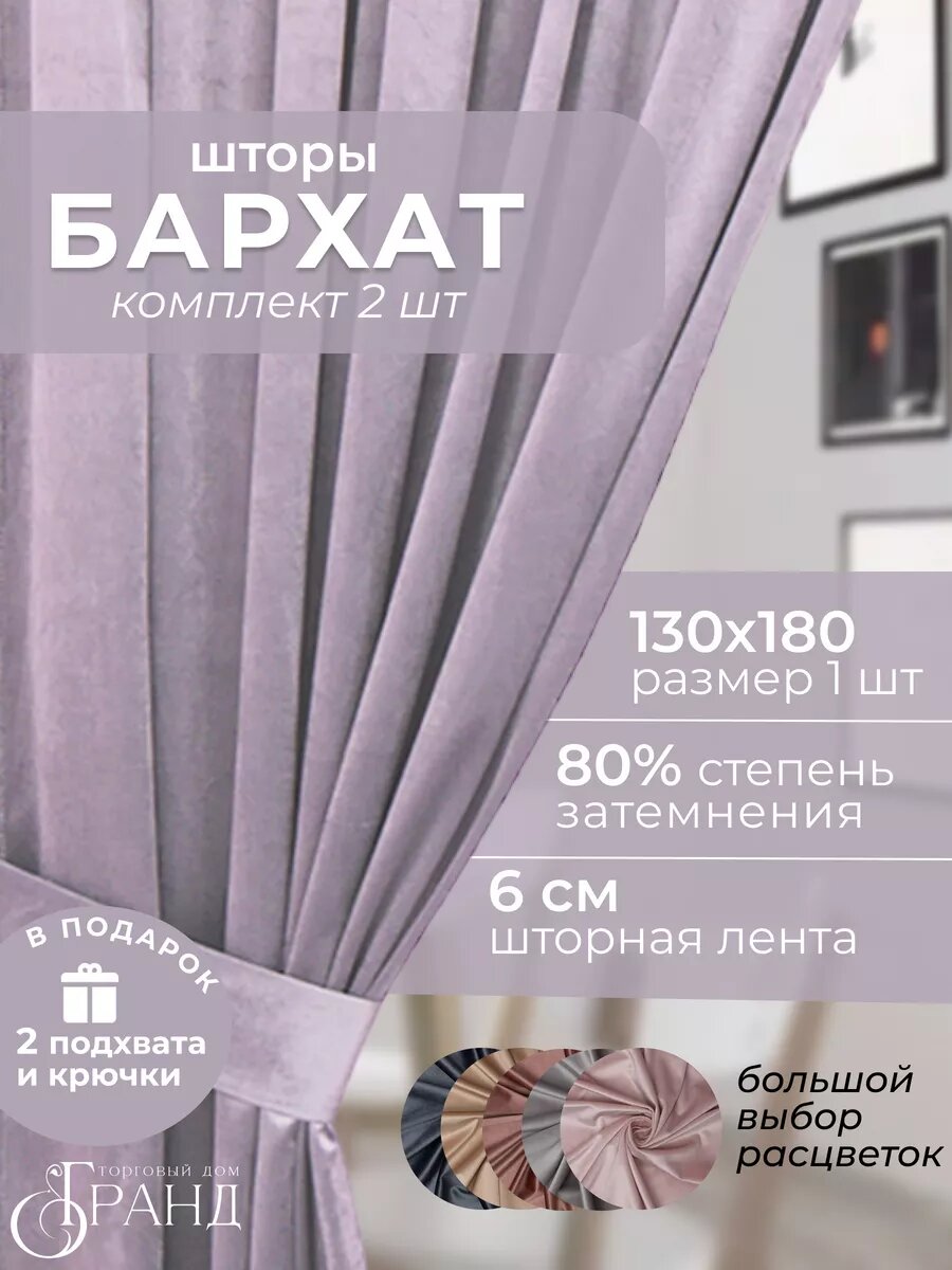 Шторы Торговый дом Гранд, 150Х260 см - 2шт., бархатные, с подхватами, для гостиной и спальни