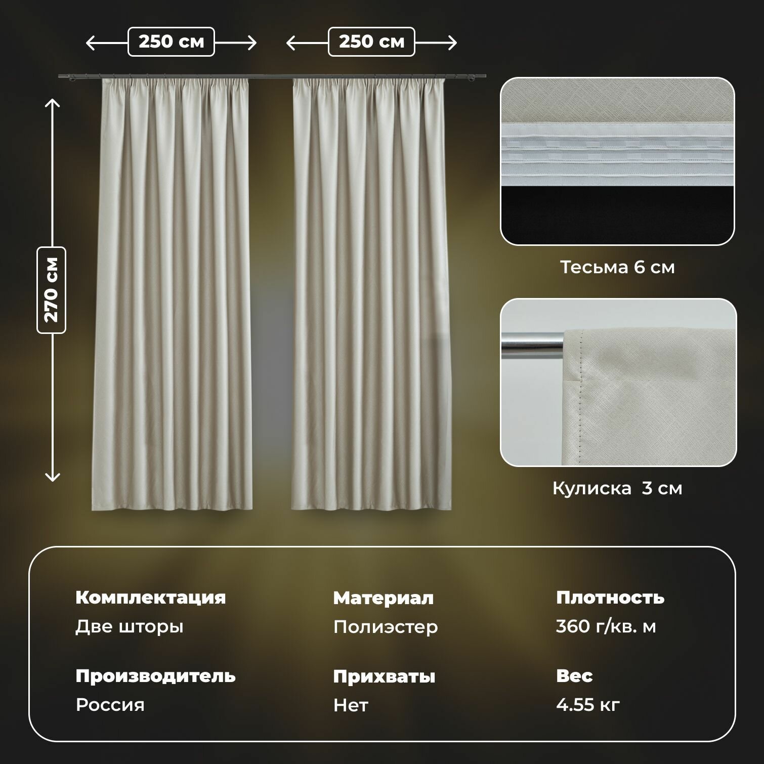 | Комплектация | Две шторы |