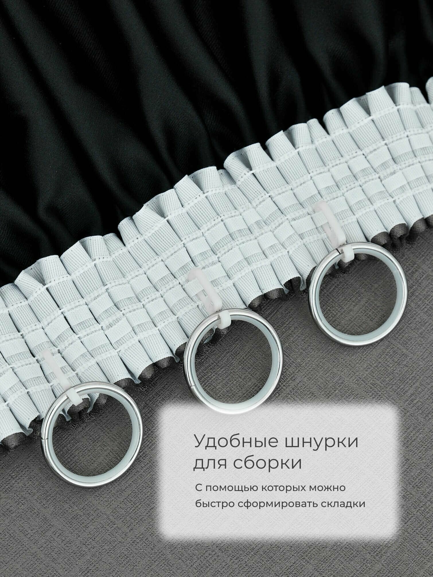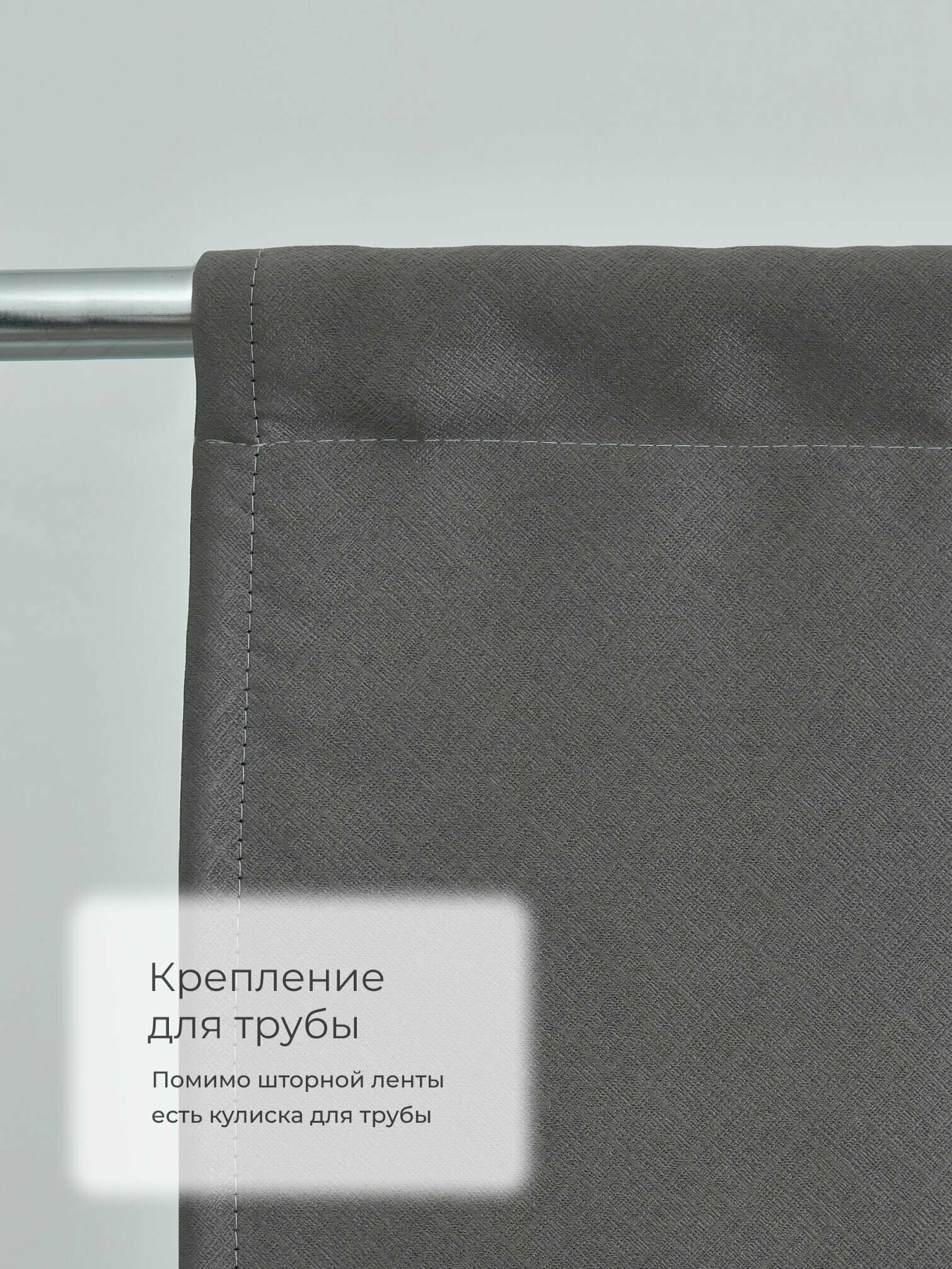 Комплект штор для комнаты Shtoraland Блэкаут 100%, графитовый, 150x250 см - 2 шт, однотонные портьеры для гостиной, спальни, зала, на ленте 6 см