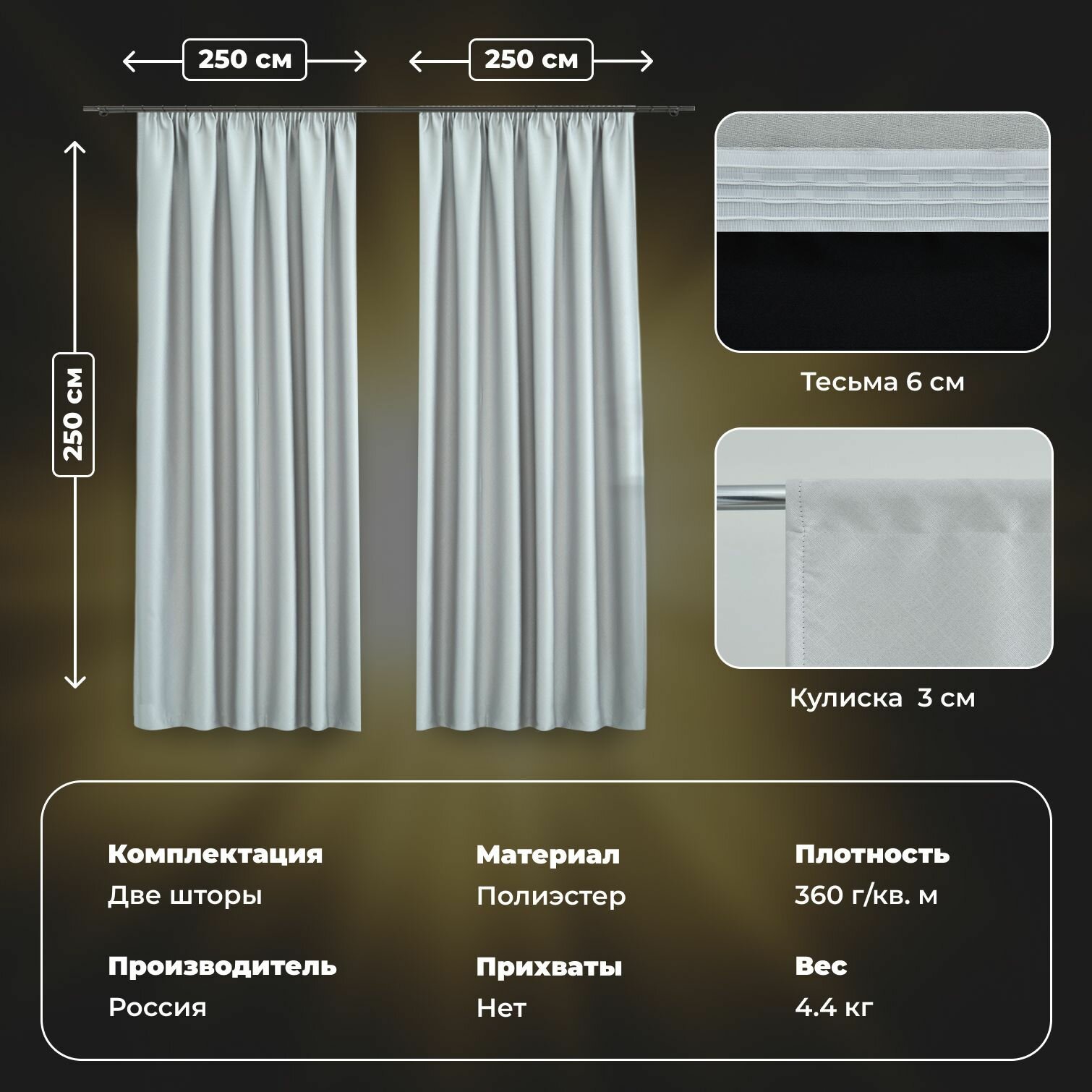 Комплект штор для комнаты Shtoraland Блэкаут 100%, светло-серый, 250x270 см - 2 шт, однотонные светонепроницаемые.