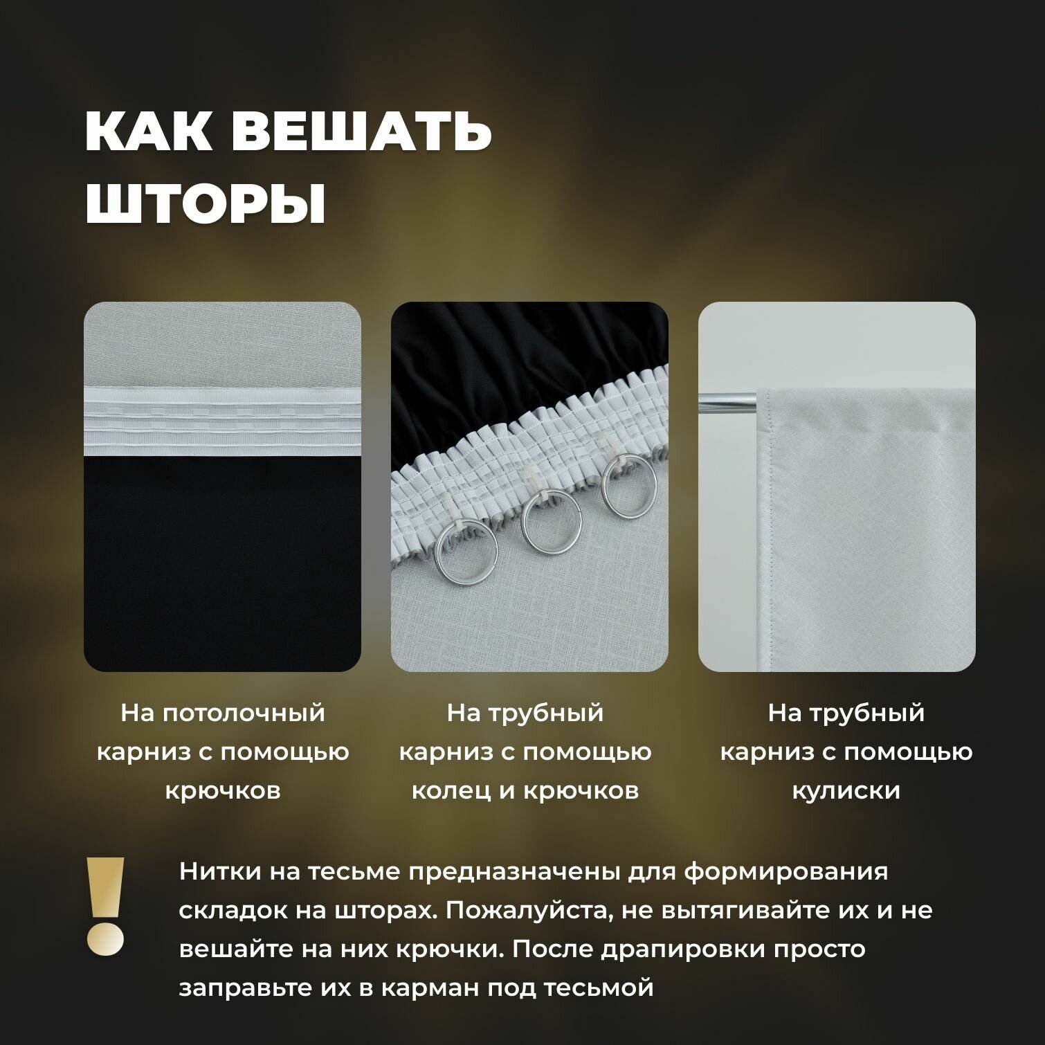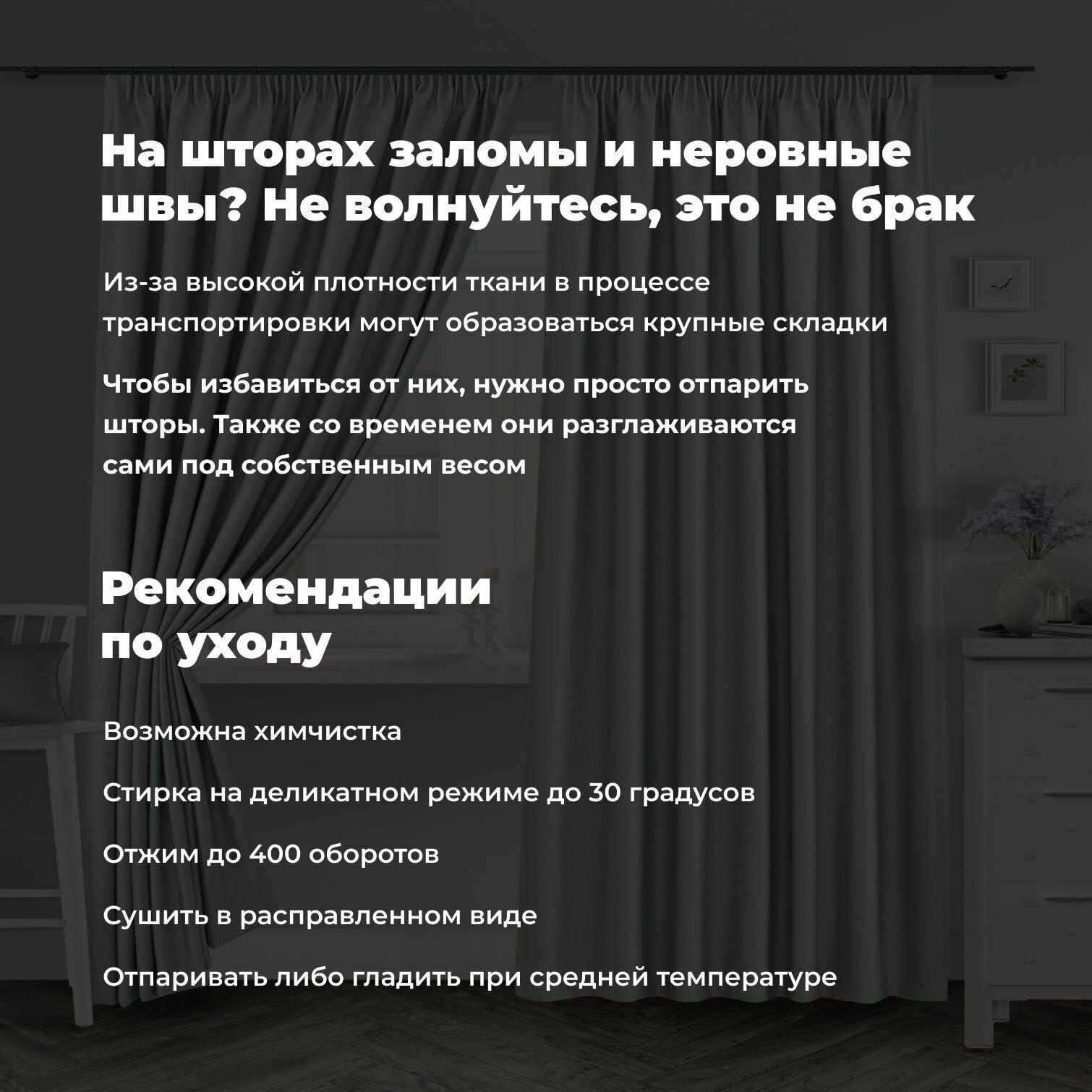 Комплект штор для комнаты Shtoraland Блэкаут 100%, графитовый, 150x250 см - 2 шт, однотонные портьеры для гостиной, спальни, зала, на ленте 6 см