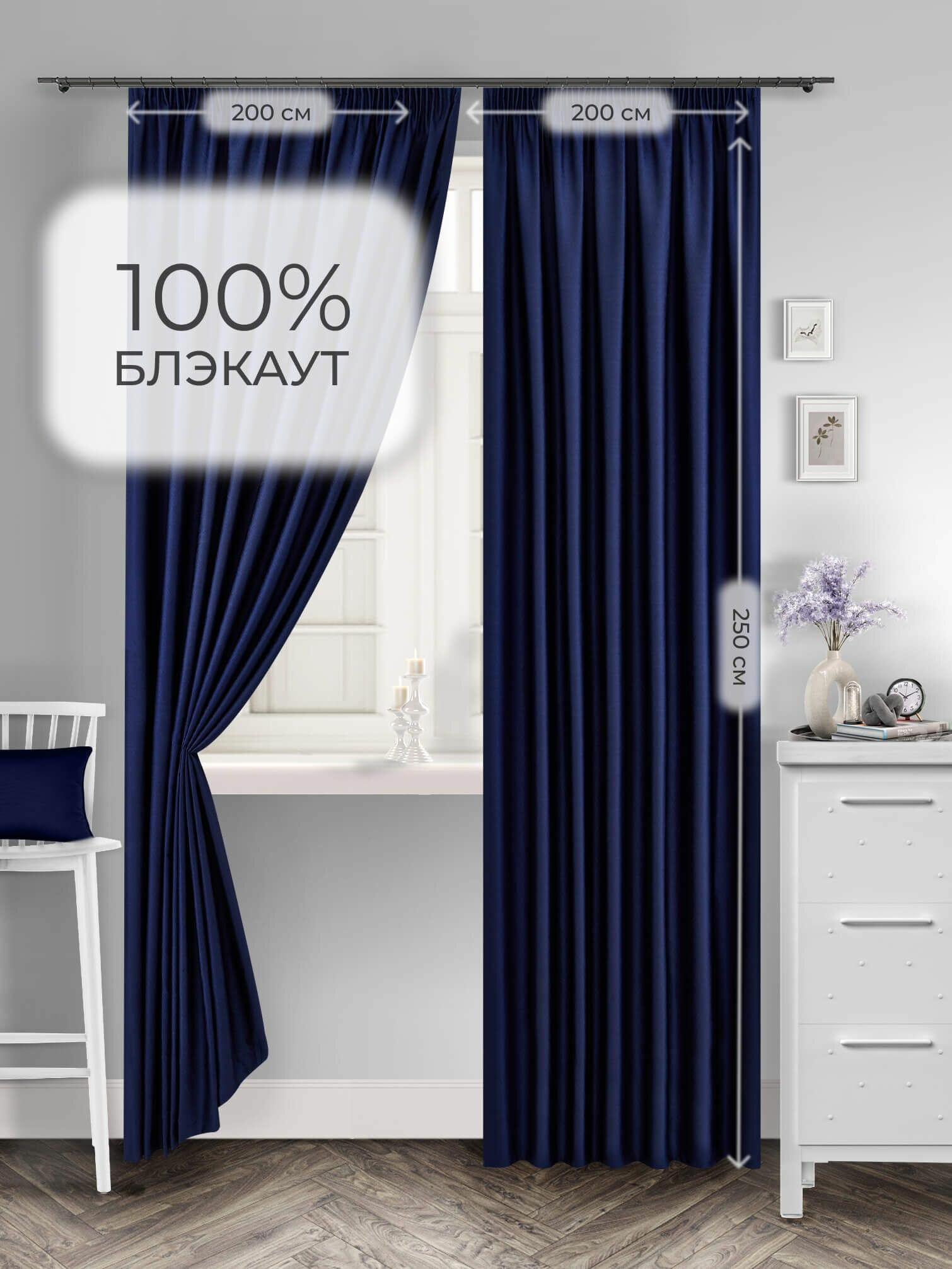 Комплект штор для комнаты Shtoraland Блэкаут 100%, синий, 250x250 см - 2 шт, однотонные светонепроницаемые.