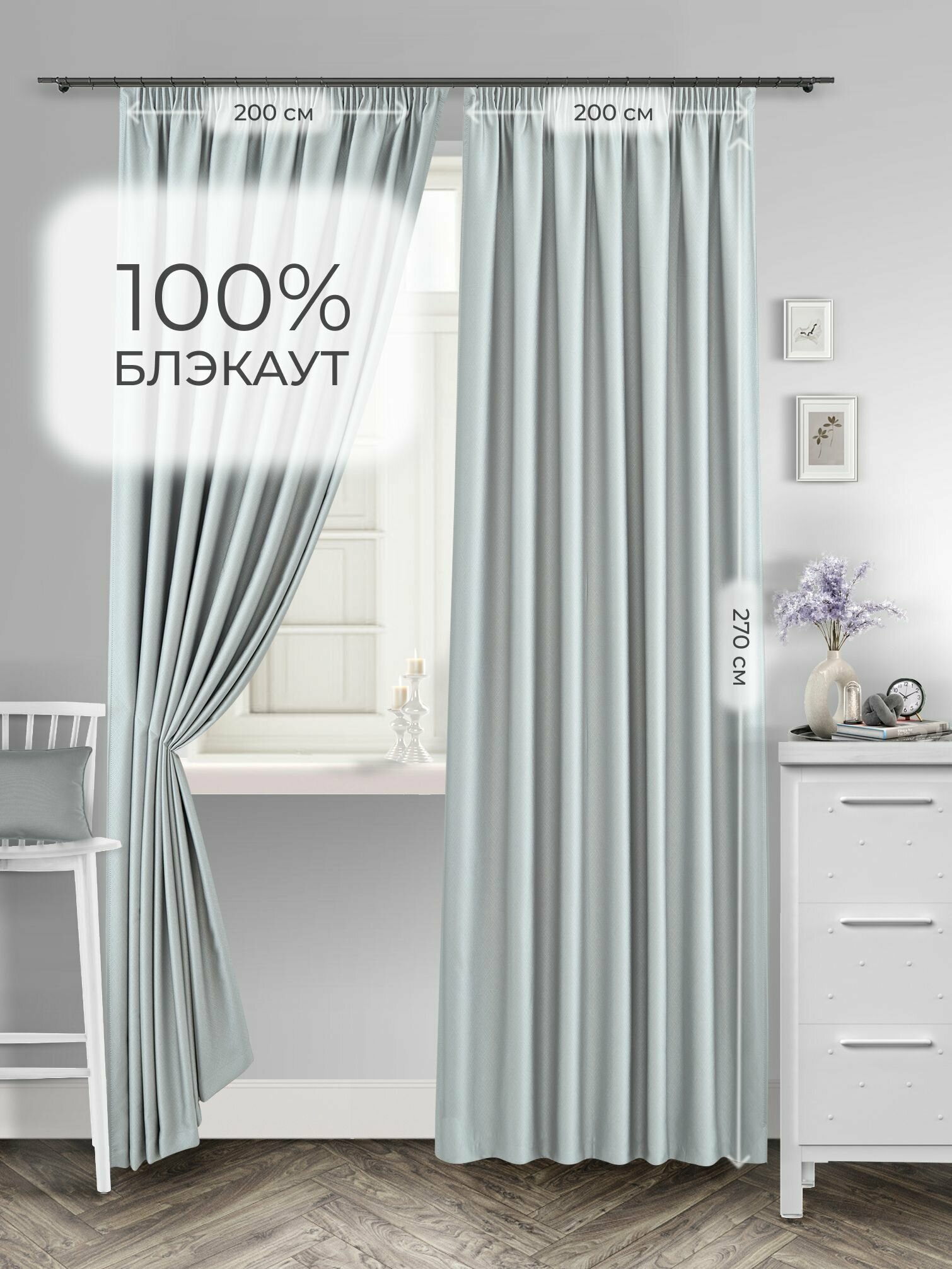 Комплект штор для комнаты Shtoraland Блэкаут 100%, светло-серый, 150x270 см - 2 шт, однотонные светонепроницаемые.