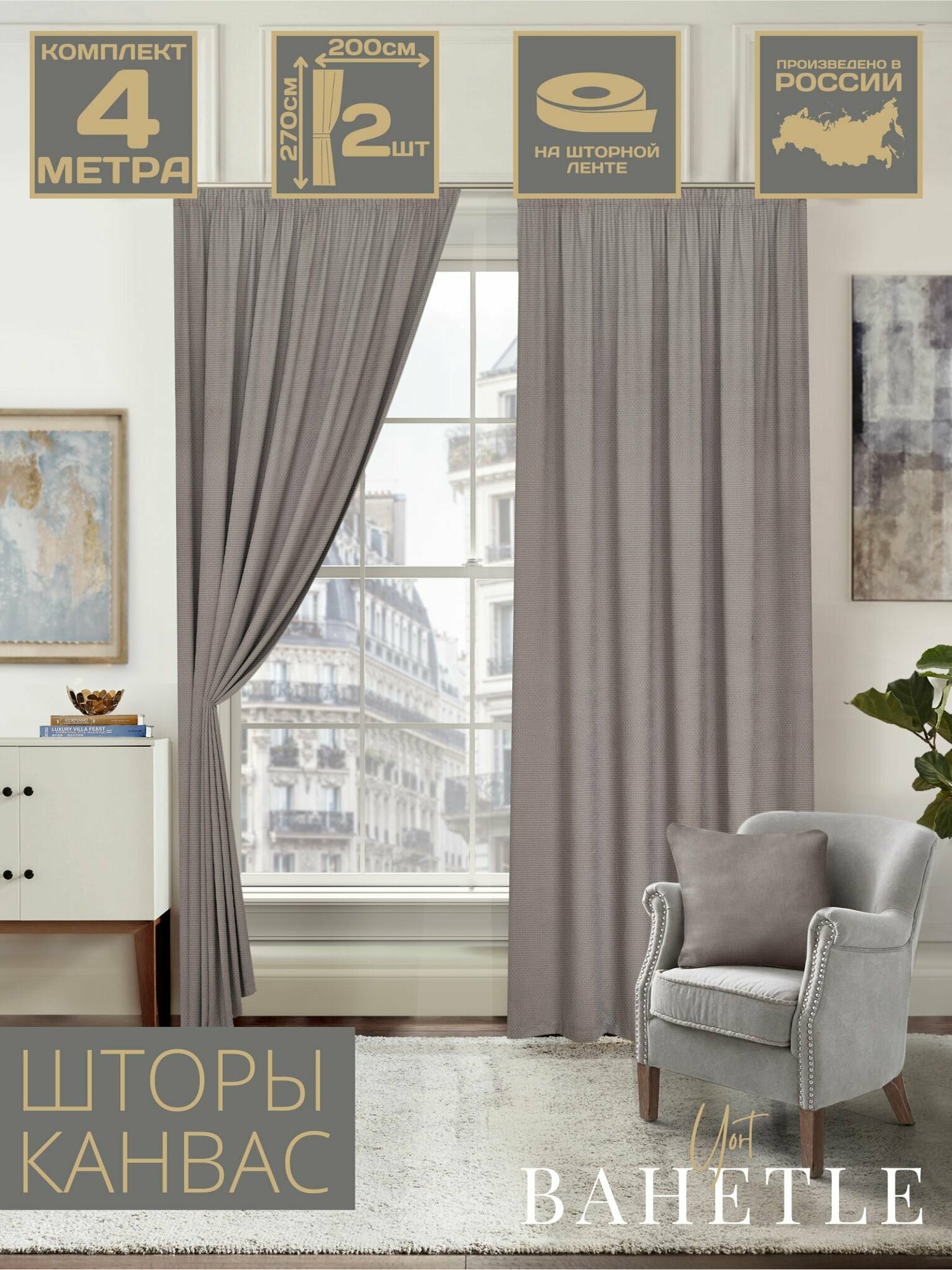 Комплект штор канвас,200х270см(2шт),темно-серый