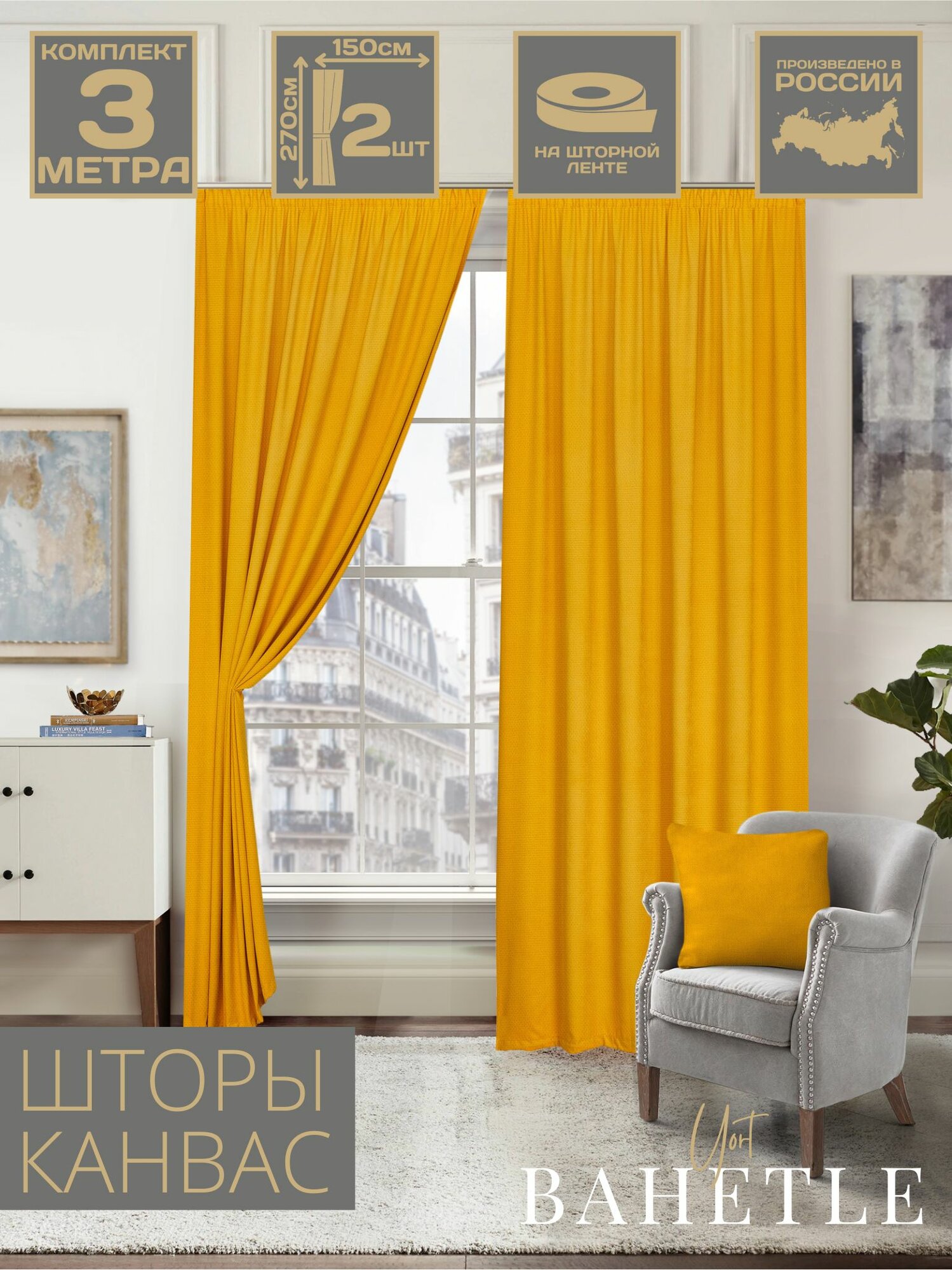 Купить Комплект штор канвас,150х270см(2шт),желтый