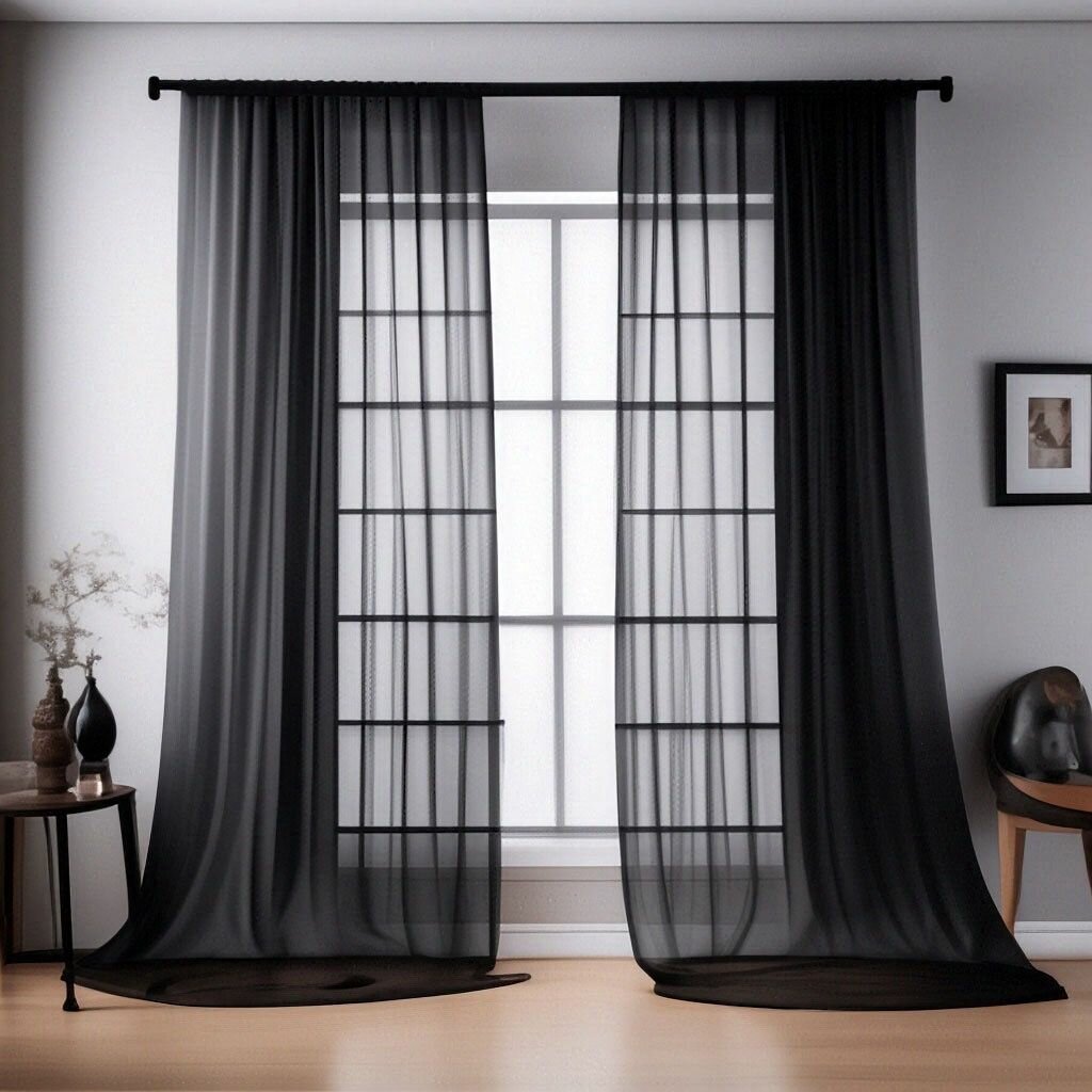Тюль однотонный - 2 шторы ( выс 230 см х 100 см ) арт - Т-1 высота 230 см черная