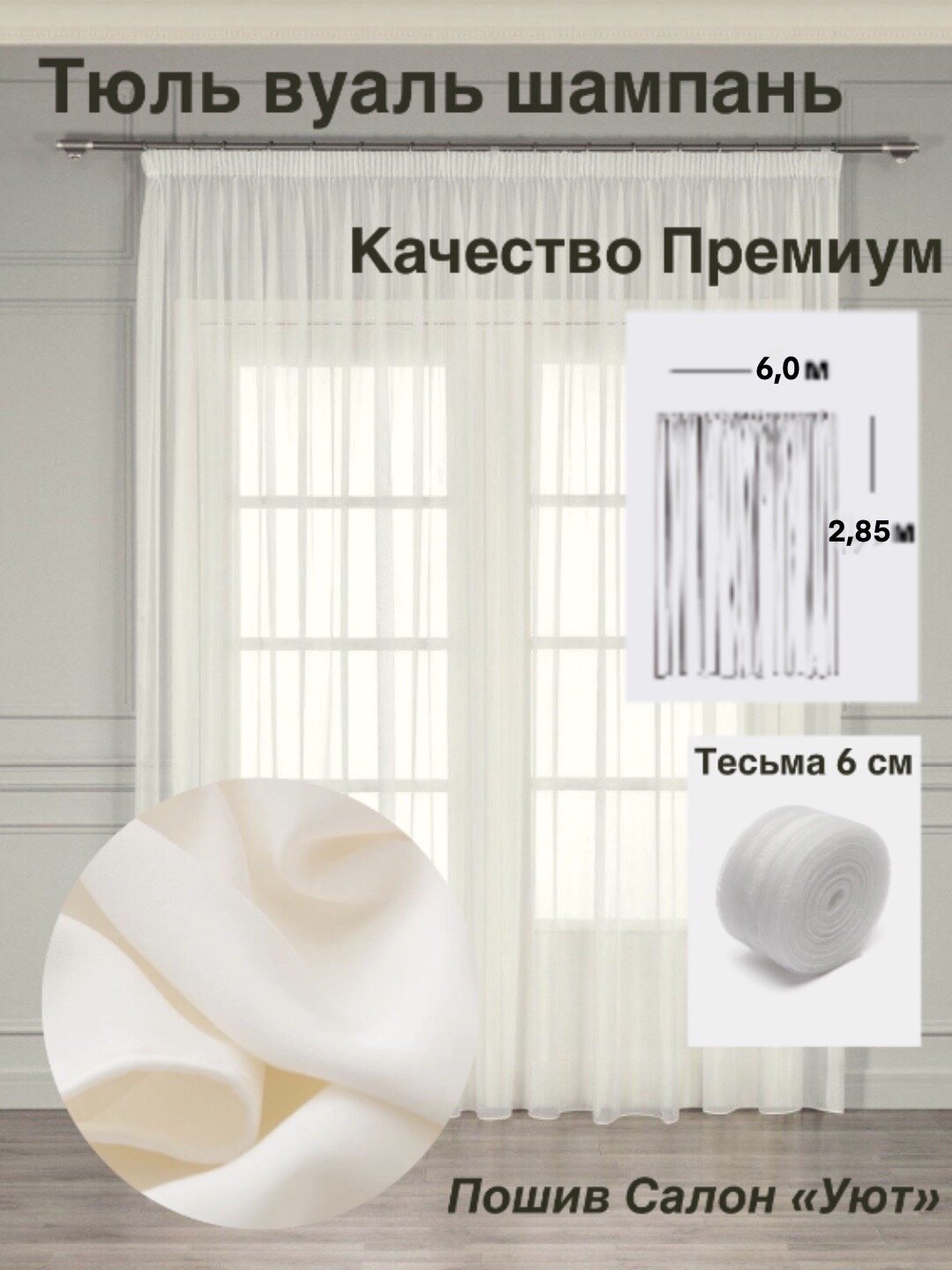 Тюль "Премиум" / 1 шт / 600*320 см / для гостиной, спальни, дома, дачи / ткань вуаль / шампань