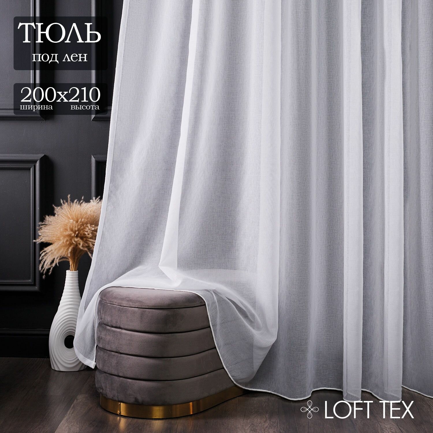Купить Готовый тюль под лен ширина 200 высота 210 см с утяжелителем короткий, занавеска для спальни 2 м