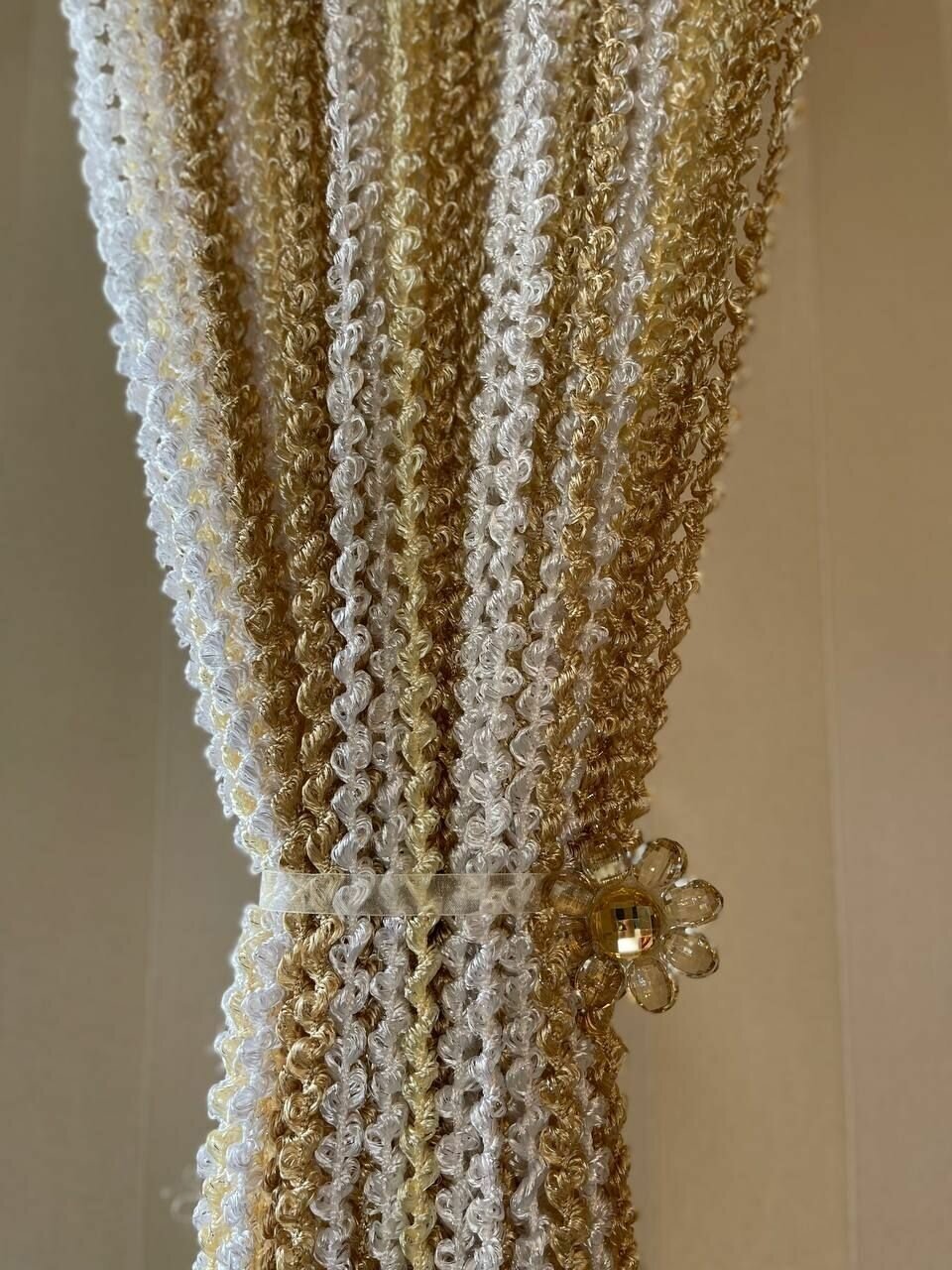 СохранитьНитяные шторы кисея, тюль спиральки макарони для кухни белые желтые золотые 300x300 см интересное: