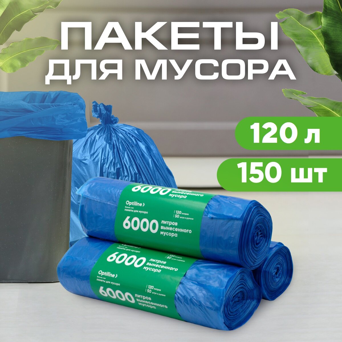 Мешки для мусора 120л, 18 мкм, ПНД, 50 шт/рул, 70х110 см, синие, 3 рулона в наборе (23-1059) интересное: