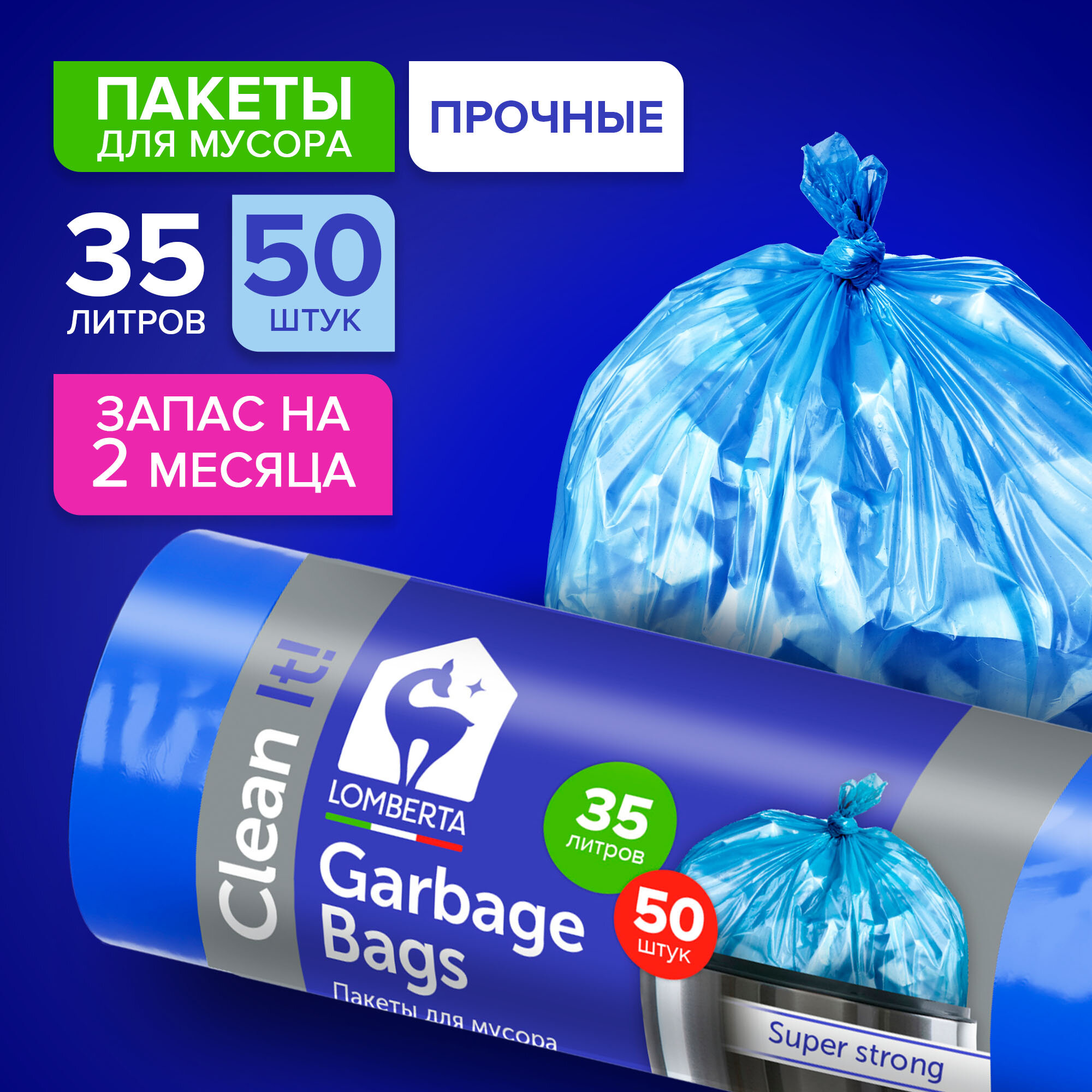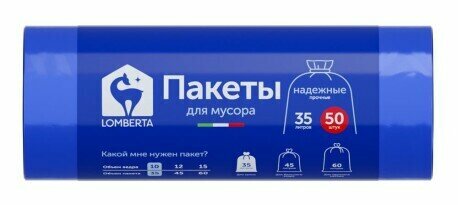 Мешки для мусора Lomberta, плотные в рулоне, 35 литров, 50 шт