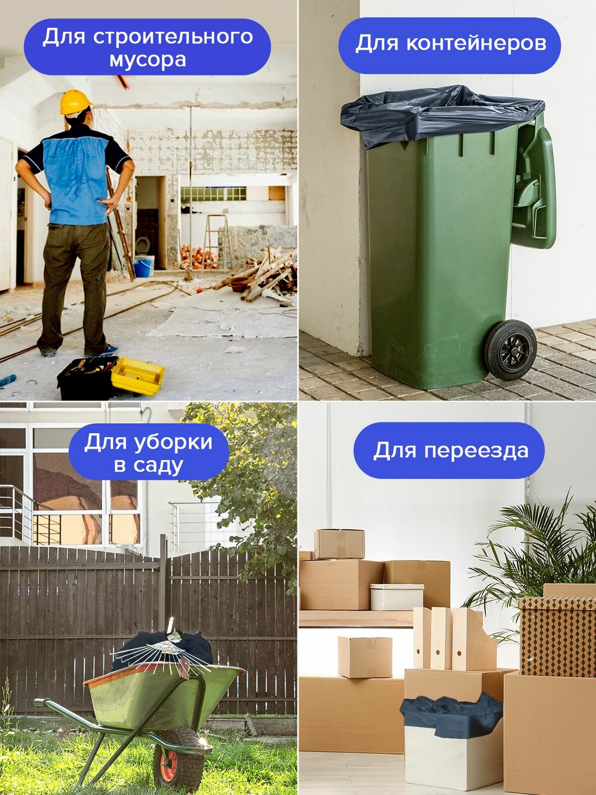 Мешок мусорный 180 литров, сверхпрочный, для строительного мусора, для уборки территории, для уборки после ремонта