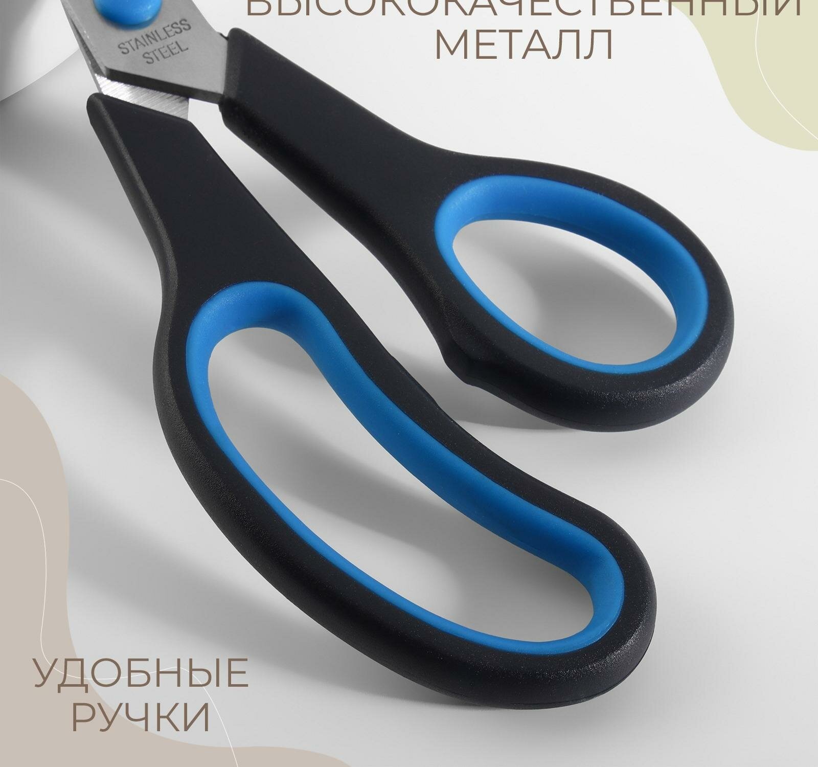 Ножницы BRAUBERG "Classic+", комплект 24 шт., 205 мм, черно-синие, классической формы, резиновые вставки, 236449