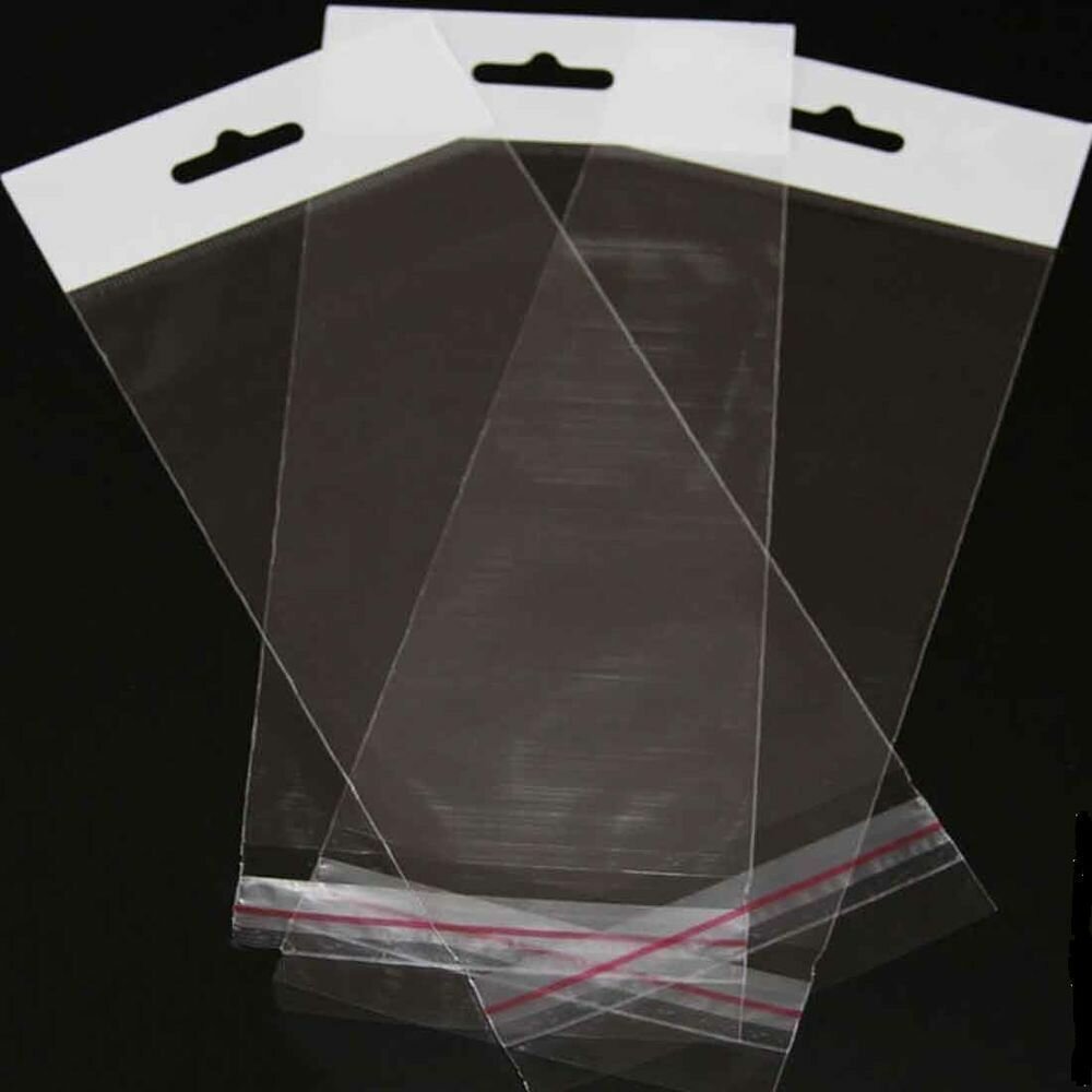 500 пакетов 4х6+4 см с белым подвесом и клеевым клапаном для упаковки из прозрачной пленки бопп