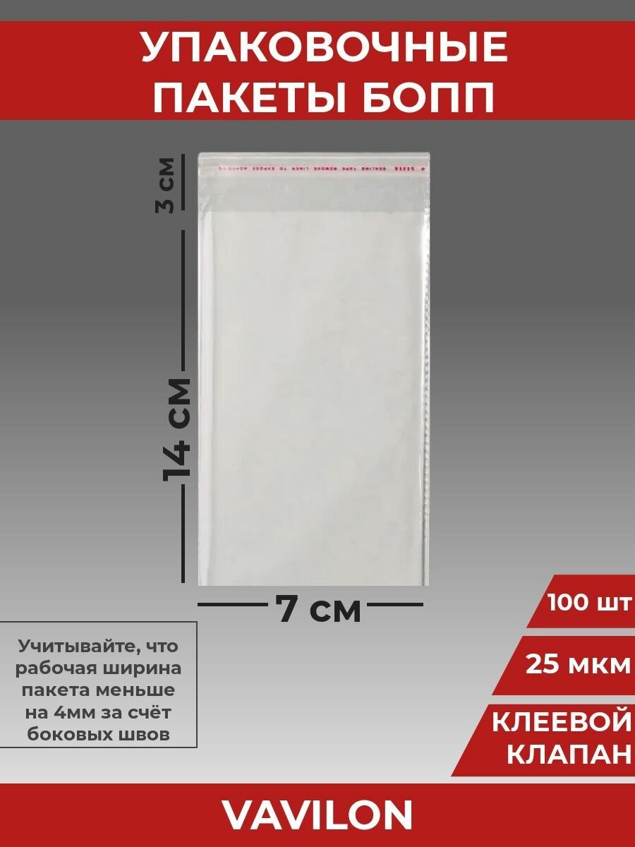 Купить Упаковочные бопп пакеты с клеевым клапаном, 7*14 см,100 шт.