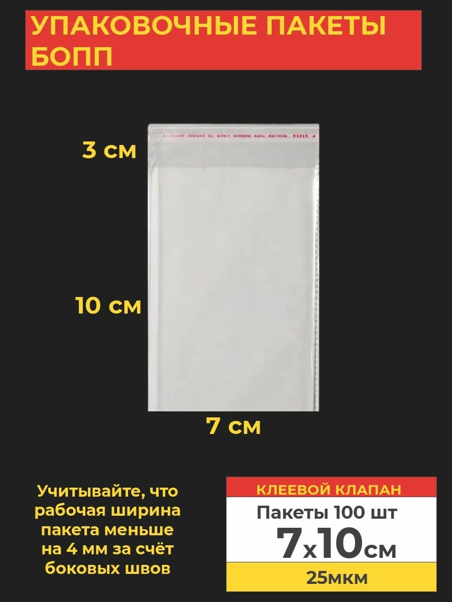 Купить Упаковочные бопп пакеты с клеевым клапаном, 7*10 см,100 шт.