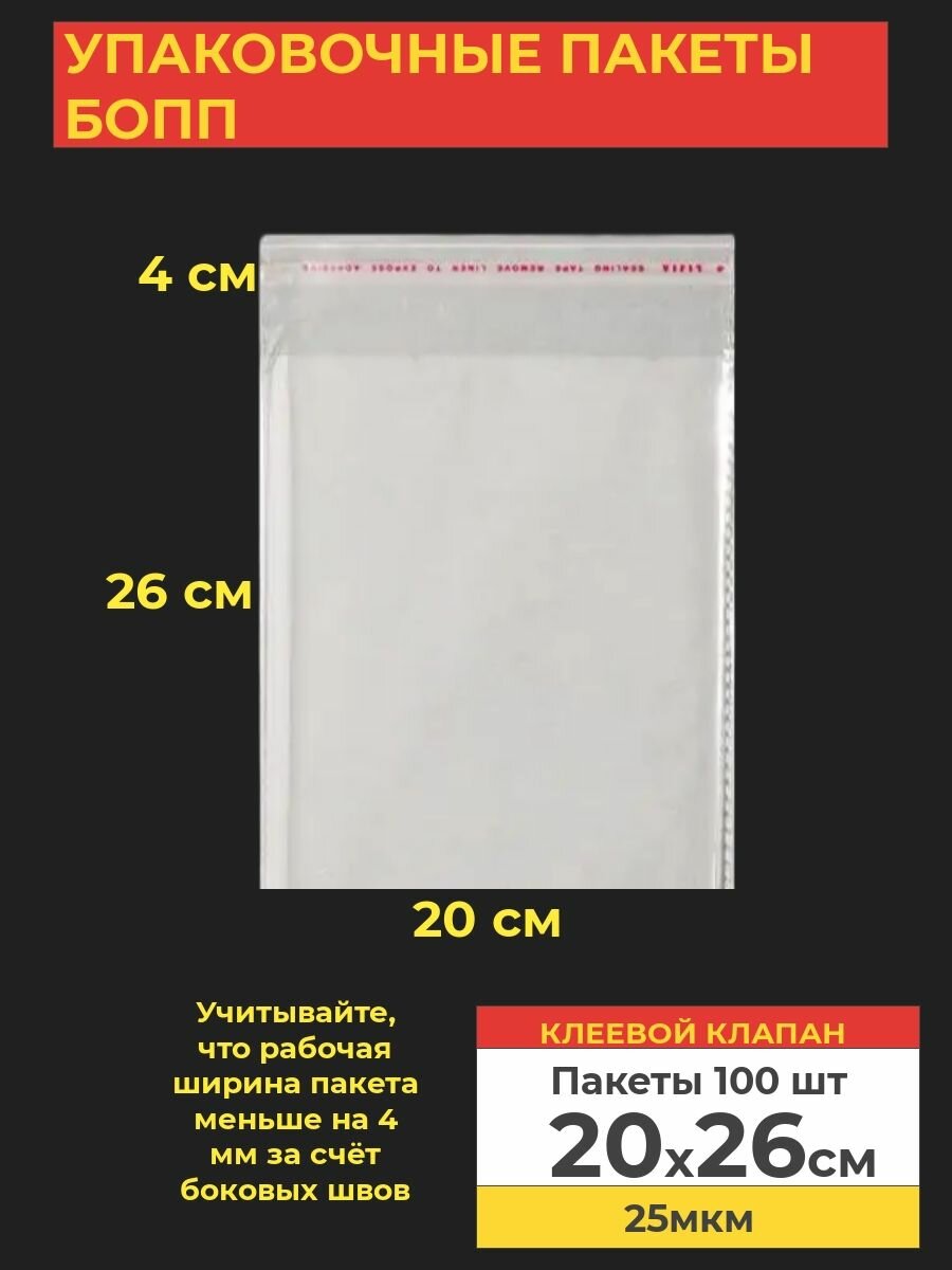 Купить Упаковочные бопп пакеты с клеевым клапаном, 20*26 см,100 шт.