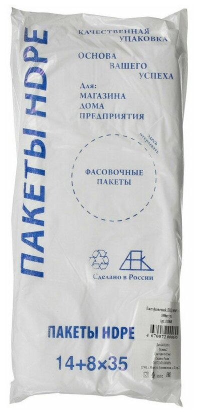 Пакет фасовочный ПНД 14+8х35 7мкм 1000шт./уп. Знак качества 20778 интересное:
